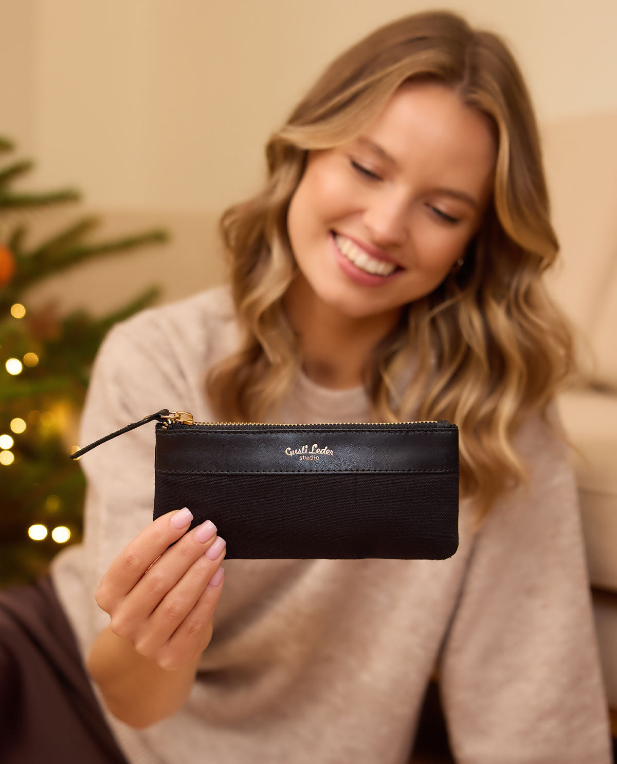 Olipa kyseessä arki tai matka – "Everly" pitää kauneudenhoitotuotteesi aina tyylikkäästi mukanasi. Tämä mustasta laadukkaasta nahasta valmistettu kosmetiikkalaukku yhdistää ajattoman eleganssin ja käytännöllisyyden, tehden siitä täydellisen kumppanin jokaiseen tilanteeseen.