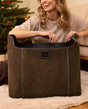 Etsitkö kotiisi jotain tyylikästä, käytännöllistä – ja yksinkertaisesti upeaa? Perinteisen tyylikäs nahkakori on katseenvangitsija jokaisessa olohuoneessa ja monikäyttöinen mestari, joka sopii moneen käyttöön! Se toimii täydellisesti takkapuiden säilytyskorina, sohvapöydän vieressä lehtikorina tai vaikka ostoskassina kauppareissulla. Kestävän materiaalinsa ja laadukkaan mokkanahkaviimeistelynsä ansiosta "Joseph" on erittäin tukeva ja pitkäikäinen. Kahden kantokahvansa ansiosta sitä on helppo kuljettaa, ja puut voi noutaa suoraan puutarhasta. Täydellinen lisä olohuoneeseesi!