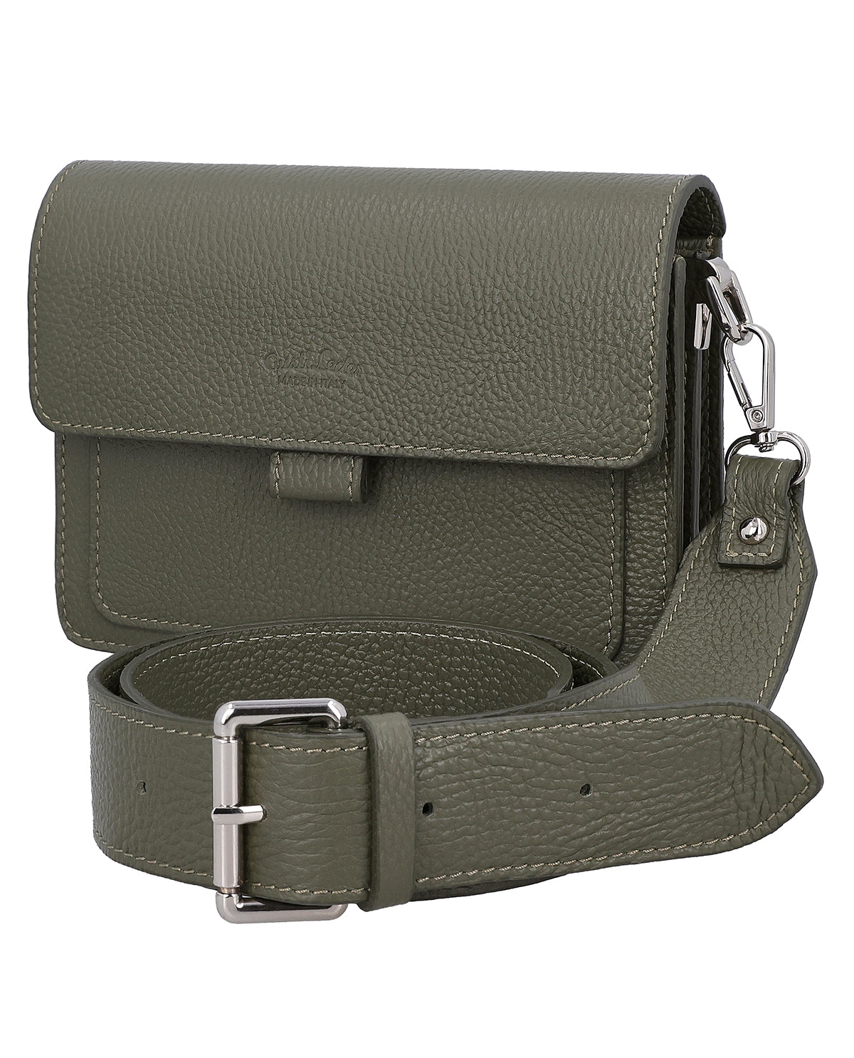 Trude-olkalaukku yhdistää ajattoman eleganssin ja harkitun toiminnallisuuden ja on luotettava kumppani arjessa. Se on valmistettu korkealaatuisesta nahasta ja koristeltu hillityllä Made in Italy -logolla, joka symboloi laatua ja tyylitajua. Selkeä siluetti ja magneettinen läppä antavat laukulle rauhallisen, elegantin ilmeen. Säädettävän ja irrotettavan nahkahihnan ansiosta voit kantaa "Trudea" joustavasti olkapäälle tai ristiin – juuri niin kuin se sopii päivääsi.