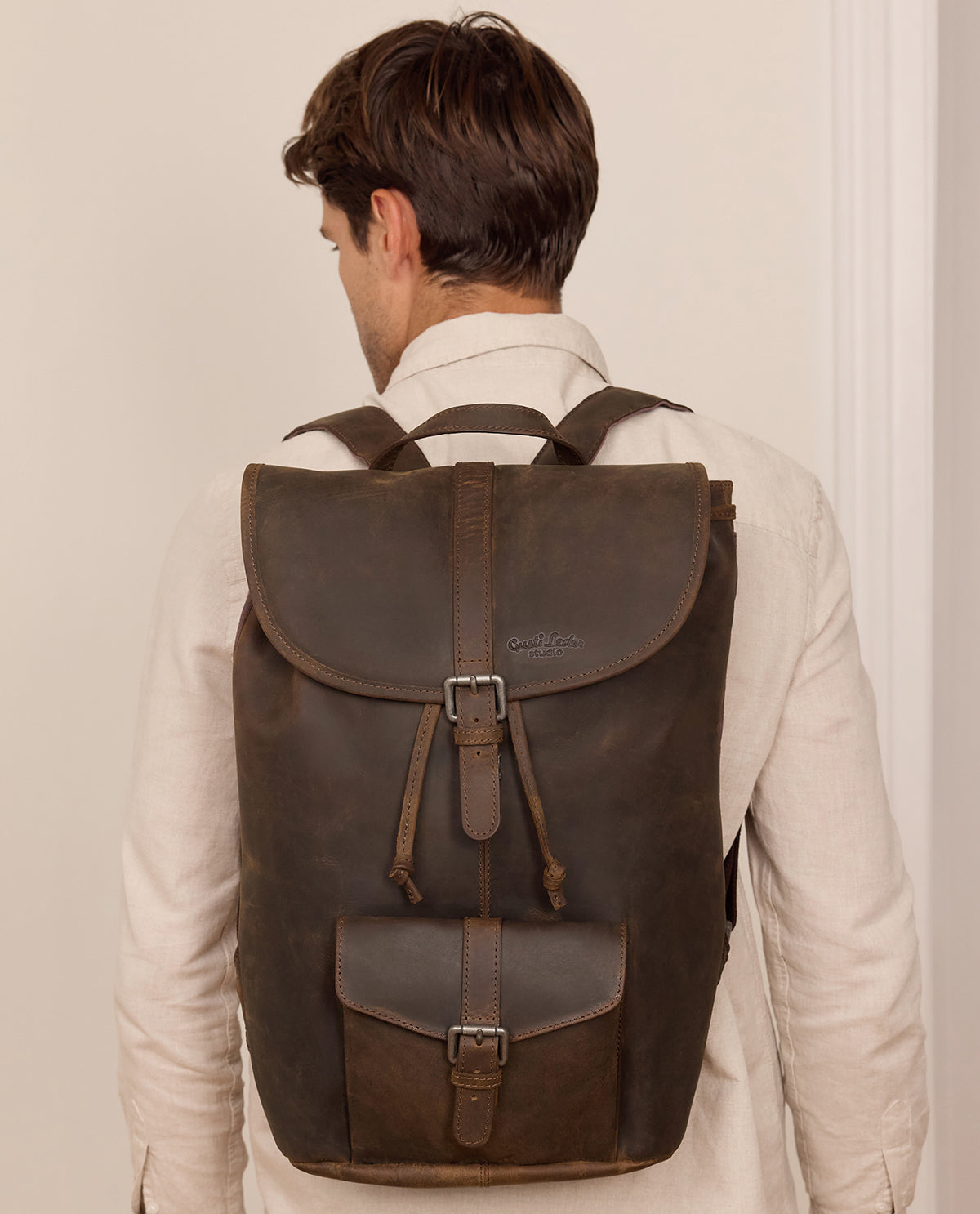 Tämä tilava reppu, joka on valmistettu kestävästä aidosta nahasta, tekee vaikutuksen paitsi siistillä ulkonäöllään myös joustavuudellaan ja korkealla kantomukavuudellaan. "Nolanin" tilavaan päälokeroon mahtuu esim. 15":n läppäri tai A4-kansioita ja asiakirjoja jne., yhtä helposti kuin vaellusvarusteita tulevaa vaellusretkeä varten. Samaan aikaan kiristysnauha ja soljen näköinen neppari sulkevat repun turvallisesti ja luotettavasti, jotta mikään ei katoa matkalla. Lisävarusteena on vetoketjullinen sisälokero, jossa on säilytystilaa arvokkaille tavaroille, kuten lompakolle, avaimille jne. Ulkoinen lokero, jossa on magneettisuljenta ja solki, tarjoaa tilaa pienille tavaroille, kuten nenäliinoille, käsien desinfiointiaineelle, purukumille, makeisille ja paljon muulle. Repun sisäpuoli on vuorattu vedenpitävällä polypuuvillalla, ja pehmustettu selkäosa ja säädettävien olkahihnojen alapuoli on valmistettu värikoordinoidusta kankaasta. Tämä nahkainen reppu tarjoaa sinulle ylimääräisen annoksen kantomukavuutta ja on yksinkertaisesti välttämätön kaikilla kulkemillasi poluilla.