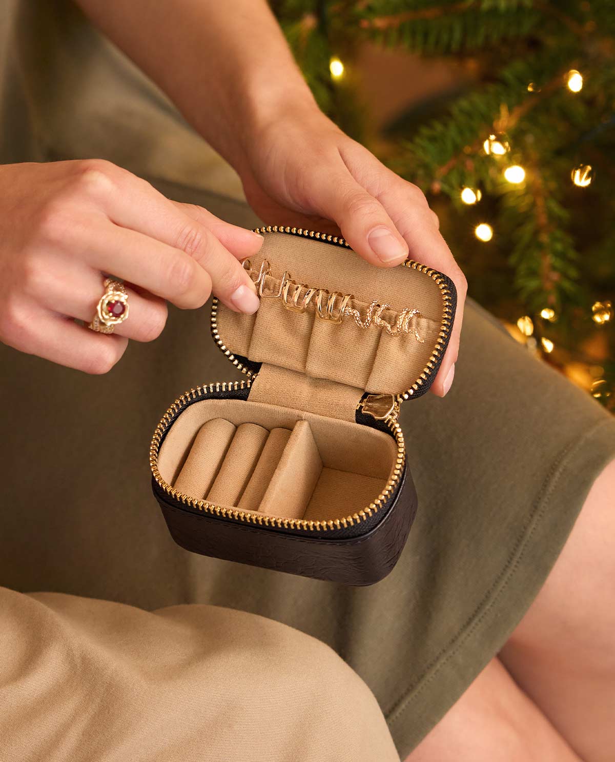 "Levken" pehmeät sisätaskut tarjoavat riittävästi tilaa kaulaketjujen, korvakorujen ja sormusten huolelliseen lajitteluun. Erillisten lokeroiden ansiosta korusi pysyvät paikoillaan ja ovat aina helposti saatavilla. Voit luottaa siihen, että mikään ei mene solmuun tai vaurioidu.