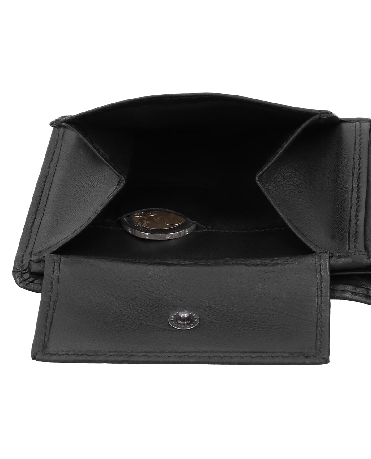 Sisäpuolella lompakko yllättää erinomaisesti järjestetyllä säilytysjärjestelmällä, joka sisältää kaksi setelitaskua, erillisen kolikkotaskun, joka avautuu painonapilla, sekä yhteensä 11 korttipaikkaa ja taskua. Suunnitteluun integroitu kääntöosa lisää lompakkoon vielä yhden suuren ikkunan, jossa voi säilyttää esimerkiksi henkilökorttia, ajokorttia tai rakkaiden valokuvia. Lisäksi lompakon kätevä koko osoittautuu hyödylliseksi, sillä sinne mahtuvat esimerkiksi ajoneuvopaperit taittelematta ja siten ilman rypistymistä.