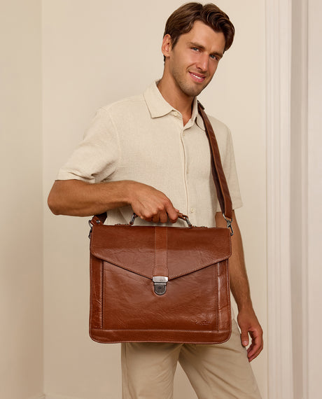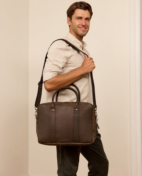 Business- ja kannettavat tietokonelaukut – tyylikkäitä ja toiminnallisia työarkeen! Olipa kyseessä toimisto, kokoukset tai liikematkat – laadukas business- tai kannettavan tietokoneen laukku on korvaamaton lisävaruste moderniin työarkeen. Se suojaa kannettavaasi ja tarjoaa riittävästi tilaa tärkeille asiakirjoille, latureille ja henkilökohtaisille tavaroille. Nahkaiset kannettavan tietokoneen laukkumme yhdistävät toiminnallisuuden ajattomaan muotoiluun ja varmistavat, että olet aina tyylikäs ja järjestelmällinen liikkeellä. Jos arvostat laatua, mukavuutta ja tyyliä, olet tullut oikeaan paikkaan.