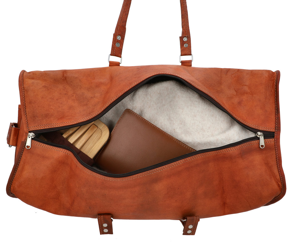 Kasviparkitusta vuohennahasta valmistettu tilava laukku tekee vaikutuksen klassisella vintage-muotoilullaan, mutta vakuuttaa myös korkealla käyttö mukavuudella ja runsaalla tilalla. Vaatteet ja kaksi paria kenkiä mahtuvat laukun päälokeroon yhtä helposti kuin meikkipussi, lempikirja, muistivihko ja juomapullo. Sisäisessä vetoketjullisessa lisälokerossa voit säilyttää turvallisesti arvokkaampia tavaroita, kuten matkustusasiakirjoja, lompakkoa, kännykkää jne. Etupuolella on myös suuri ulkoinen lokero ja molemmilla sivuilla pieni lokero, johon voit sijoittaa esimerkiksi makeisia, elintarvikkeita, Gameboyn, nenäliinoja, pienen ensiapupakkauksen ja paljon muuta. Solkikiinnikkeet antavat Oscarille erityistä vintage-viehätystä. Laukun suuri päälokero sulkeutuu vetoketjulla, joten mikään ei voi kadota matkalla.