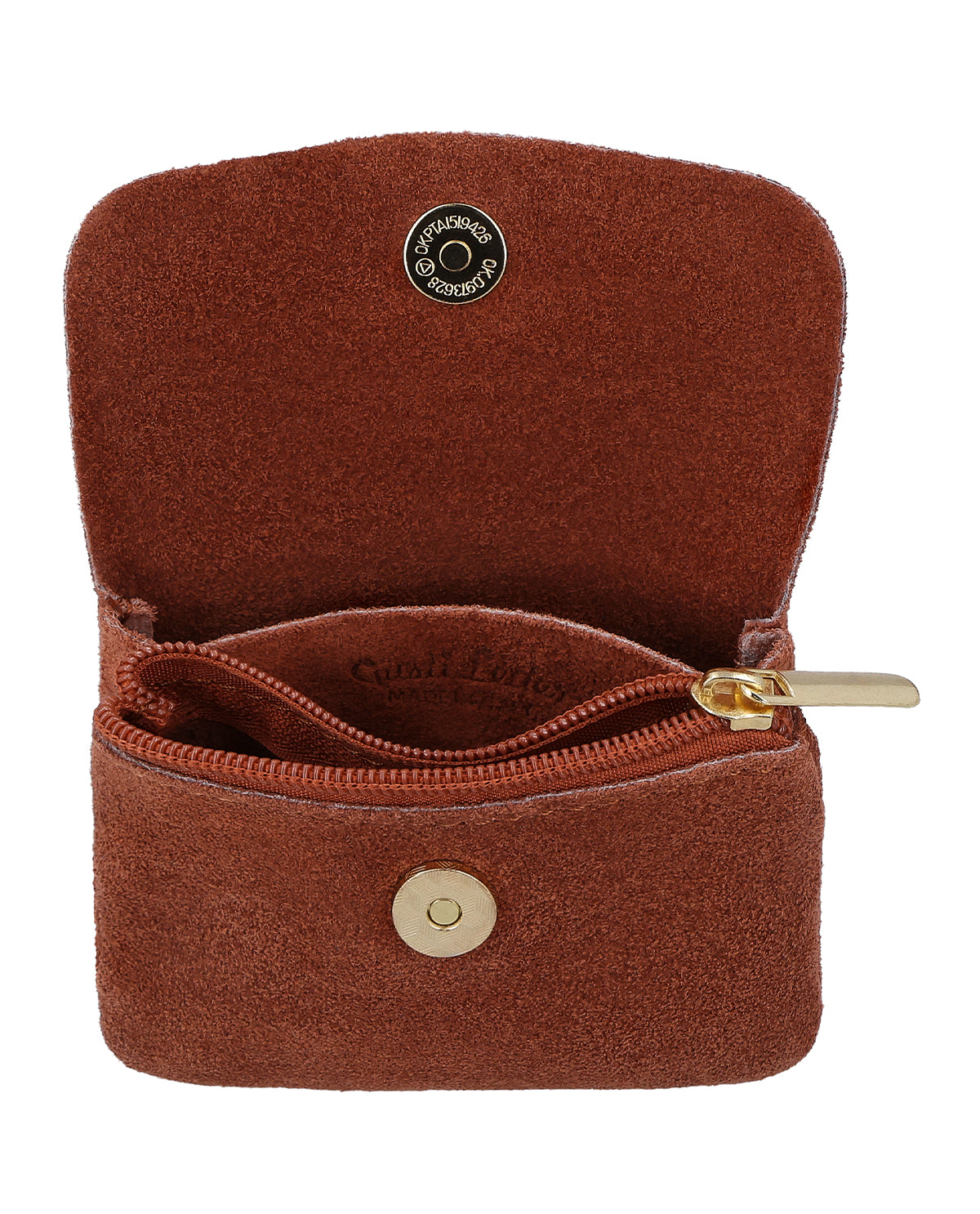 "Maite" säilytyslaukku on täydellinen ratkaisu pienten mutta tärkeiden tavaroidesi tyylikkääseen säilytykseen. Valmistettu korkealaatuisesta nahasta, jolla on pehmeä mokkanahkainen ulkonäkö, se tarjoaa sinulle paitsi elegantin ulkonäön myös miellyttävän tuntuman. Sen käytännöllinen painonappikiinnitys varmistaa, että tavarasi ovat turvallisesti tallessa, kun taas vetoketjullinen pääosasto tarjoaa lisäsuojaa arvoesineillesi. Kompakti koko tekee "Maite"-laukun erityisen helpoksi säilyttää laukussa tai jopa taskussa – ihanteellinen arkeen.