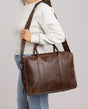 Rajoitettu erä - Kansio bisneslaukku trolley-hihnalla matkalaukku läppärilaukku nahkalaukku ruskea nahka