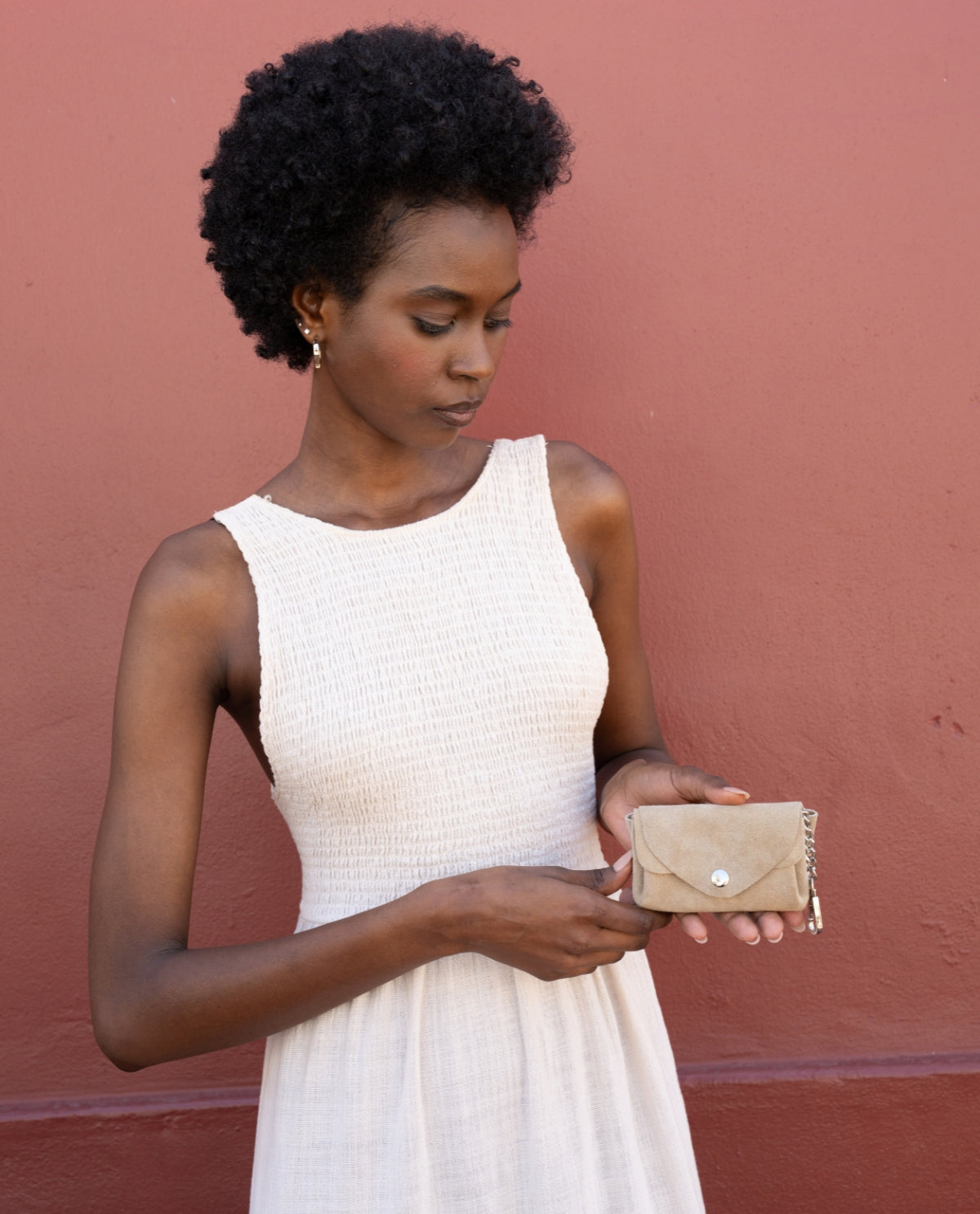 Mathilda-avaimenperässä on kaksi erillistä sisätaskua, joiden avulla voit säilyttää avaimet, kortit tai pienet välttämättömyystarvikkeet selkeästi ja erillään toisistaan. Näin kaikki pysyy siististi järjestyksessä ja aina käden ulottuvilla. Tarkka valmistus, pehmeä nahka ja selkeä muotoilu tekevät Mathildasta lisävarusteen, joka yhdistää tyylin, toiminnallisuuden ja kestävyyden täydellisesti – pieni mutta hieno yksityiskohta, joka helpottaa huomattavasti arkeasi.