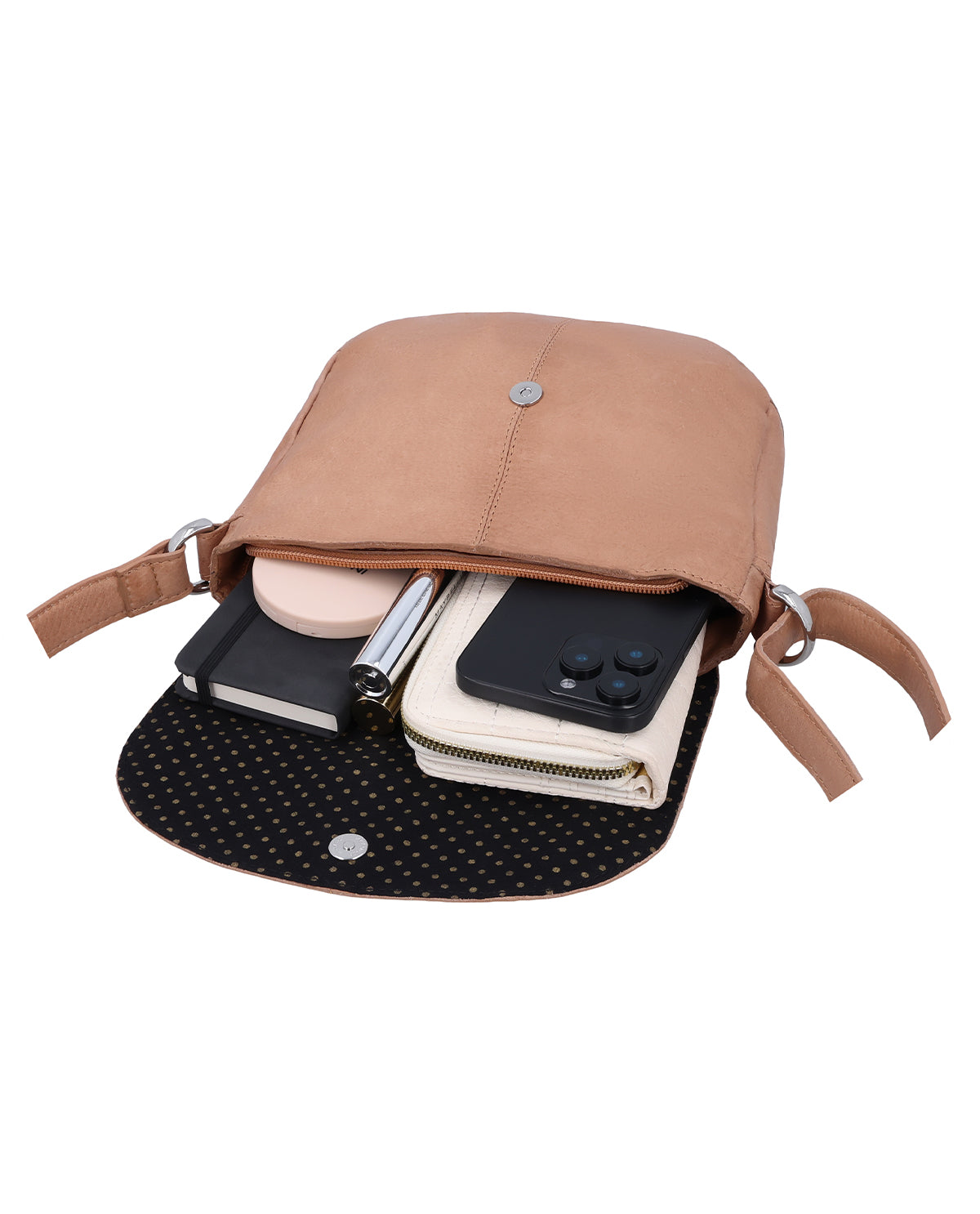 Benja-laukun sisällä on vetoketjutasku ja lisäpaikkoja, joiden avulla voit järjestää tavarasi selkeästi. Säädettävä olkahihna mukautuu kantotapaanne ja takaa mukavuuden myös pidempään kantamisen aikana. Benja on pieni naisten nahkakäsilaukku, jossa yhdistyvät luonnollisuus, toiminnallisuus ja käytännöllisyys.