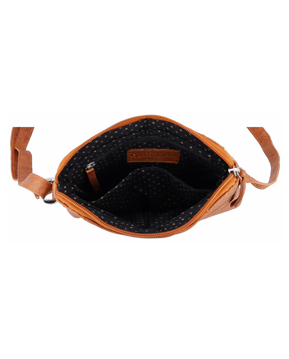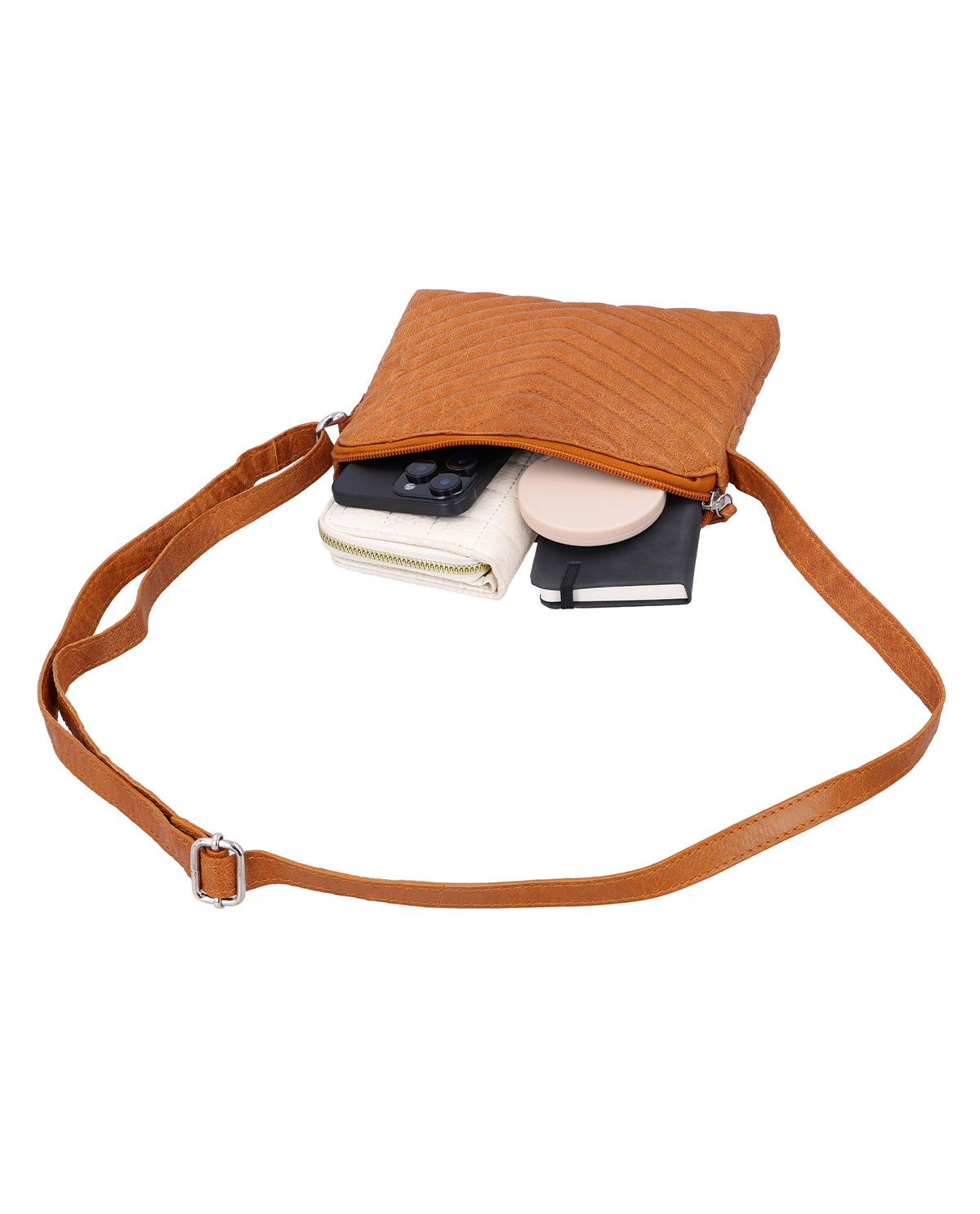 Pieni Aline-käsilaukku on naisten nahkakäsilaukku, joka sopii naisille, jotka haluavat tuoda väriä ja tekstuuria arkeensa. Ruskea nahka on eloisa, ja sen pinnalla oleva silmiinpistävä kuvio tekee siitä erityisen huomiota herättävän, joka tuo välittömästi keveyttä asuusi. Kompaktista istasta huolimatta Aline tarjoaa vetoketjullisen päälokeron ja säädettävän olkahihnan ansiosta juuri sen joustavuuden, jota tarvitset arjessa. Tämä nahkainen olkalaukku seuraa sinua rennosti läpi päivän ja tekee samalla selkeän, positiivisen tyylillisen vaikutuksen.