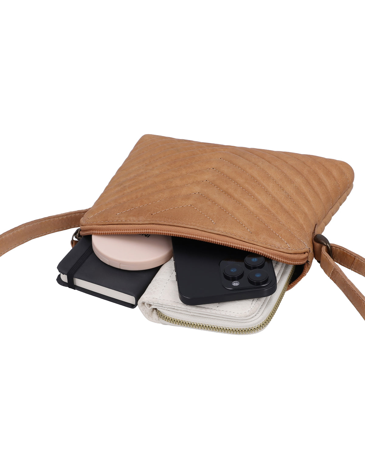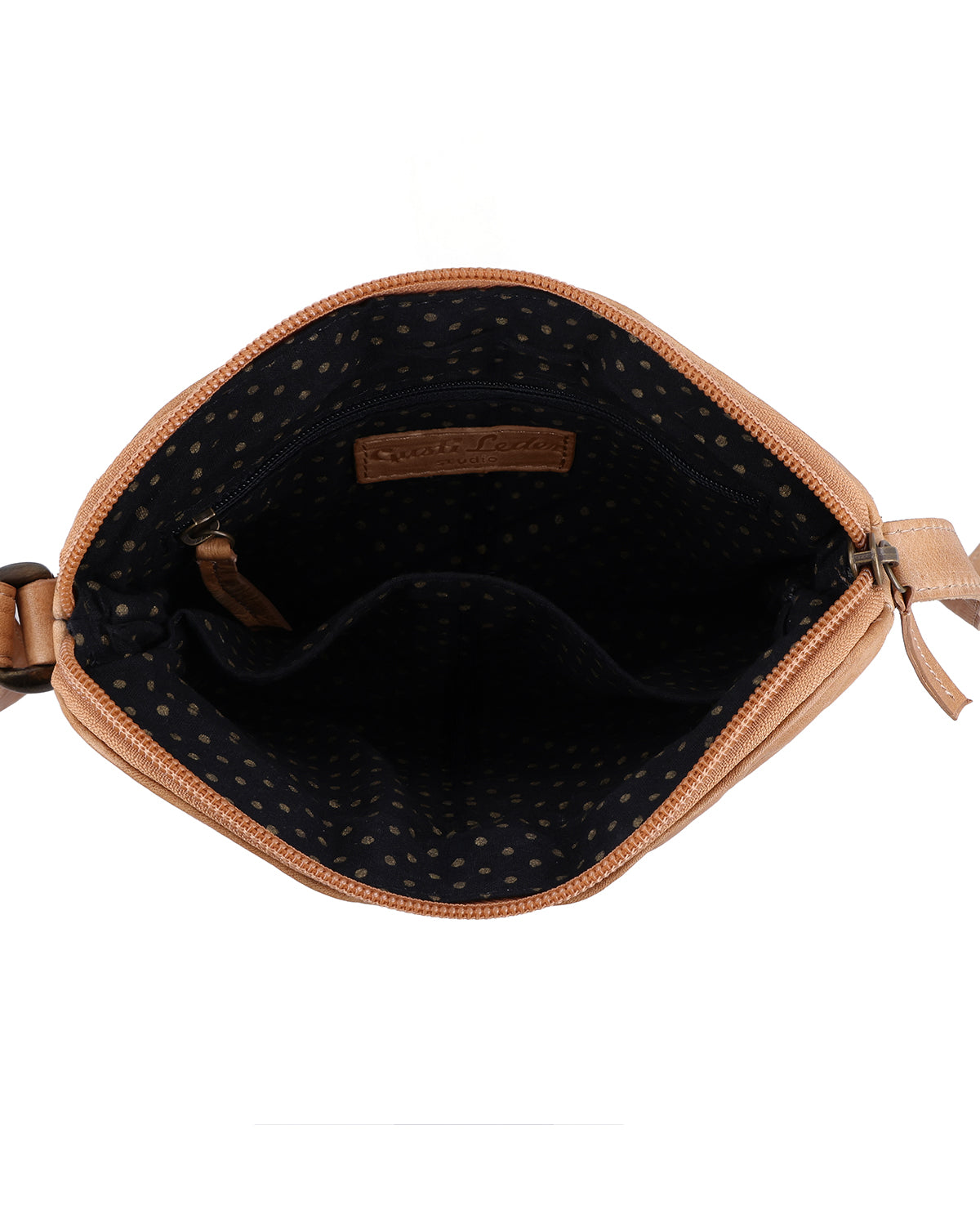 Pieni Aline-käsilaukku on naisten nahkakäsilaukku, joka sopii naisille, jotka haluavat tuoda väriä ja tekstuuria arkeensa. Ruskea nahka on eloisa, ja sen pinnalla oleva silmiinpistävä kuvio tekee siitä erityisen huomiota herättävän, joka tuo välittömästi keveyttä asuusi. Kompaktista istasta huolimatta Aline tarjoaa vetoketjullisen päälokeron ja säädettävän olkahihnan ansiosta juuri sen joustavuuden, jota tarvitset arjessa. Tämä nahkainen olkalaukku seuraa sinua rennosti läpi päivän ja tekee samalla selkeän, positiivisen tyylillisen vaikutuksen.