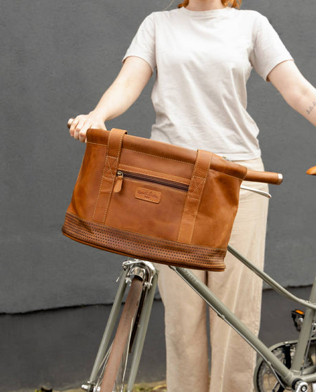 Vetoketju ja vedenpitävä sisus varmistavat, että varusteesi pysyvät aina turvassa ja kuivina. Laukku kiinnitetään nahkahihnoilla satulan alle ja lisäksi toinen hihna kiinnittää sen tiukasti vaakaputkeen. Näin „Gino B.“ pysyy tukevasti paikoillaan ilman liukumista – täydellinen kaikille matkoille.