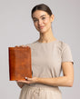 Pehmeä, luonnollisesti parkittu, vaaleanruskea vuohennahka lepää kirjasi ympärillä ja vakuuttaa yksinkertaisella tyylillään, jossa yhdistyvät luonnonmukaisuus ja trendikäs vintage-muotoilu. Vakuuttavan tuntuinen ja näköinen! Näin lempikirjasi voi kulkea mukanasi kaikkialle ilman, että se vahingoittuu tai joutuu uteliaiden katseiden uhriksi. Täydellinen myös kalenterin tms. suojakoteloksi. Todellinen muodonmuuttaja - meidän "Becky":mme!