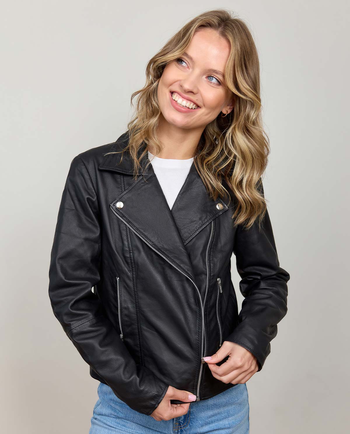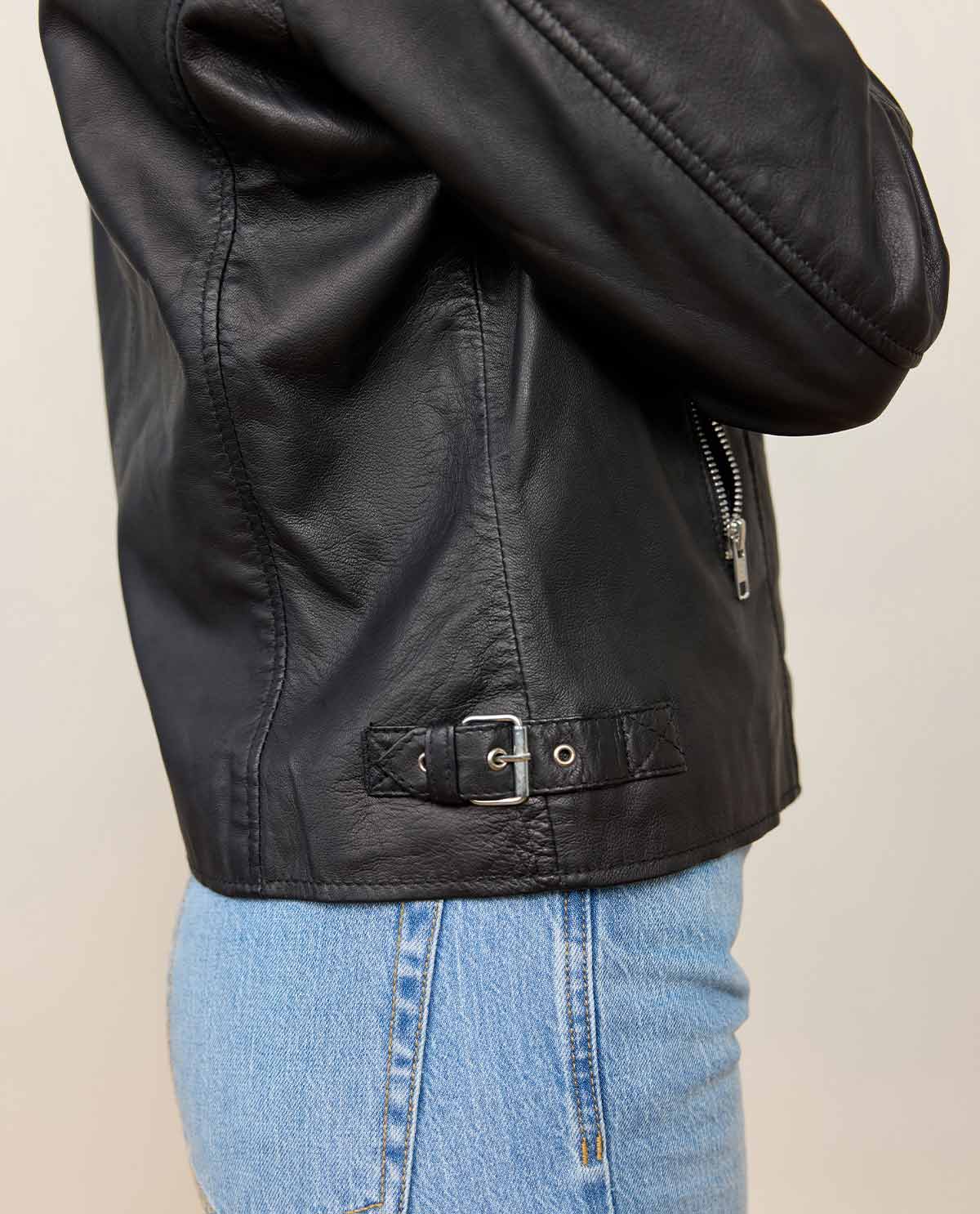Klassikko modernilla vivahteella – biker-takki „Ova“ mustasta aidosta nahasta antaa asullesi voimakkaan ja tyylikkään ilmeen. Riippumatta siitä, yhdistätkö sen farkkuihin ja saappaisiin tai puetko mekon päälle, tämä nahkatakki luo muotitietoisen vaikutelman. Laadukas nahka tuntuu miellyttävän pehmeältä ja kehittää ajan myötä yksilöllisen patinan – aivan yhtä ainutlaatuinen kuin sinä.