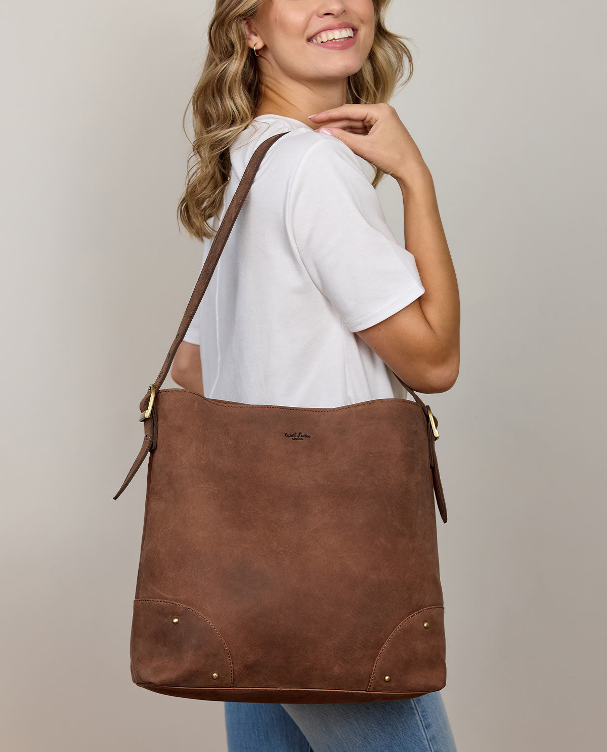 „Moje“ vakuuttaa paitsi toiminnallisuudellaan myös korkealaatuisilla yksityiskohdillaan. Sisätaskussa on lisäksi vetoketjutasku lisäturvallisuutta ja lisätilaa varten. Nahkainen kaiverruslaatta antaa laukulle henkilökohtaisen säväyksen, kun taas koristeelliset messinkiniitit etunurkissa tuovat laukkuun erityistä ilmettä. Laukku on ihanteellinen valinta naisille, jotka arvostavat sekä tyyliä että käytännöllisyyttä – täydellinen jokapäiväiseen käyttöön, toimistoon tai matkalle.