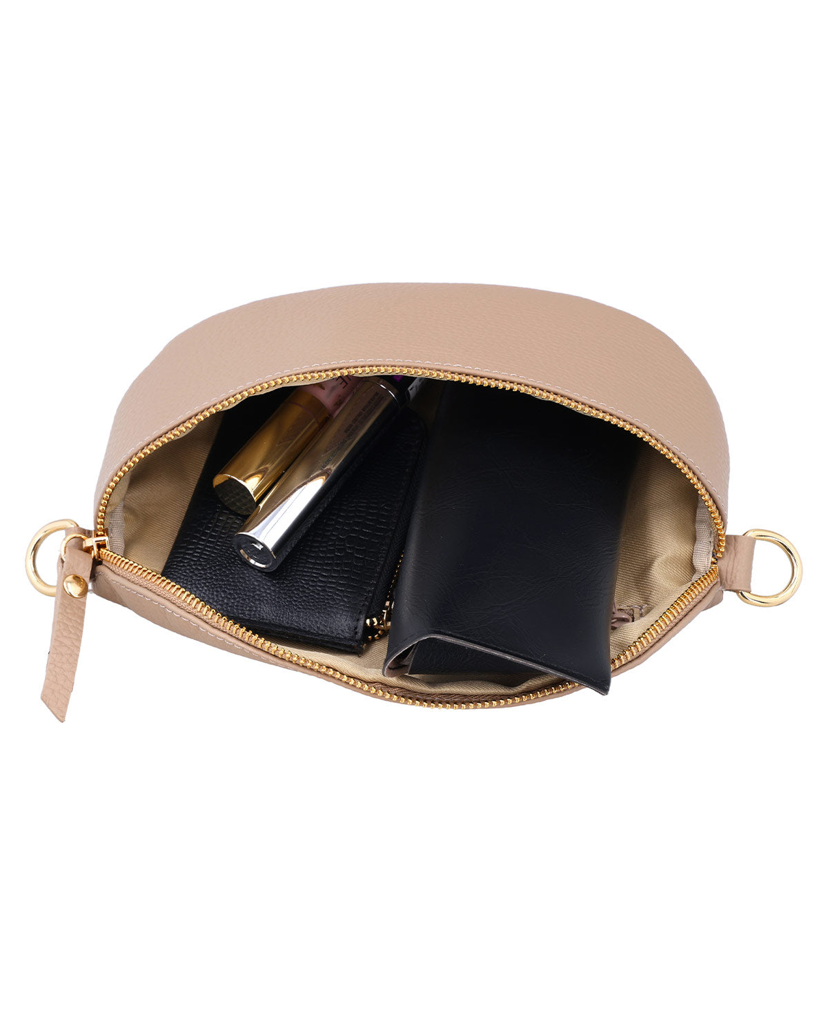 "Brinja" olkalaukku hurmaa elegantilla muotoilullaan ja korkealla toimivuudellaan. Huomiota herättävä puolipyöreä siluetti ja yläreunan täyspitkä vetoketju tarjoavat paitsi riittävästi tilaa välttämättömille tavaroillesi, myös turvallisuutta kaikille henkilökohtaisille tavaroillesi. Korkealaatuinen nahka antaa laukulle tyylikkään ulkonäön, joka sopii täydellisesti moderniin arkeesi. Sisältä löydät myös hienosti painetun "Made in Italy"-logon, joka korostaa tämän laukun alkuperää ja laatua vaikuttavalla tavalla.