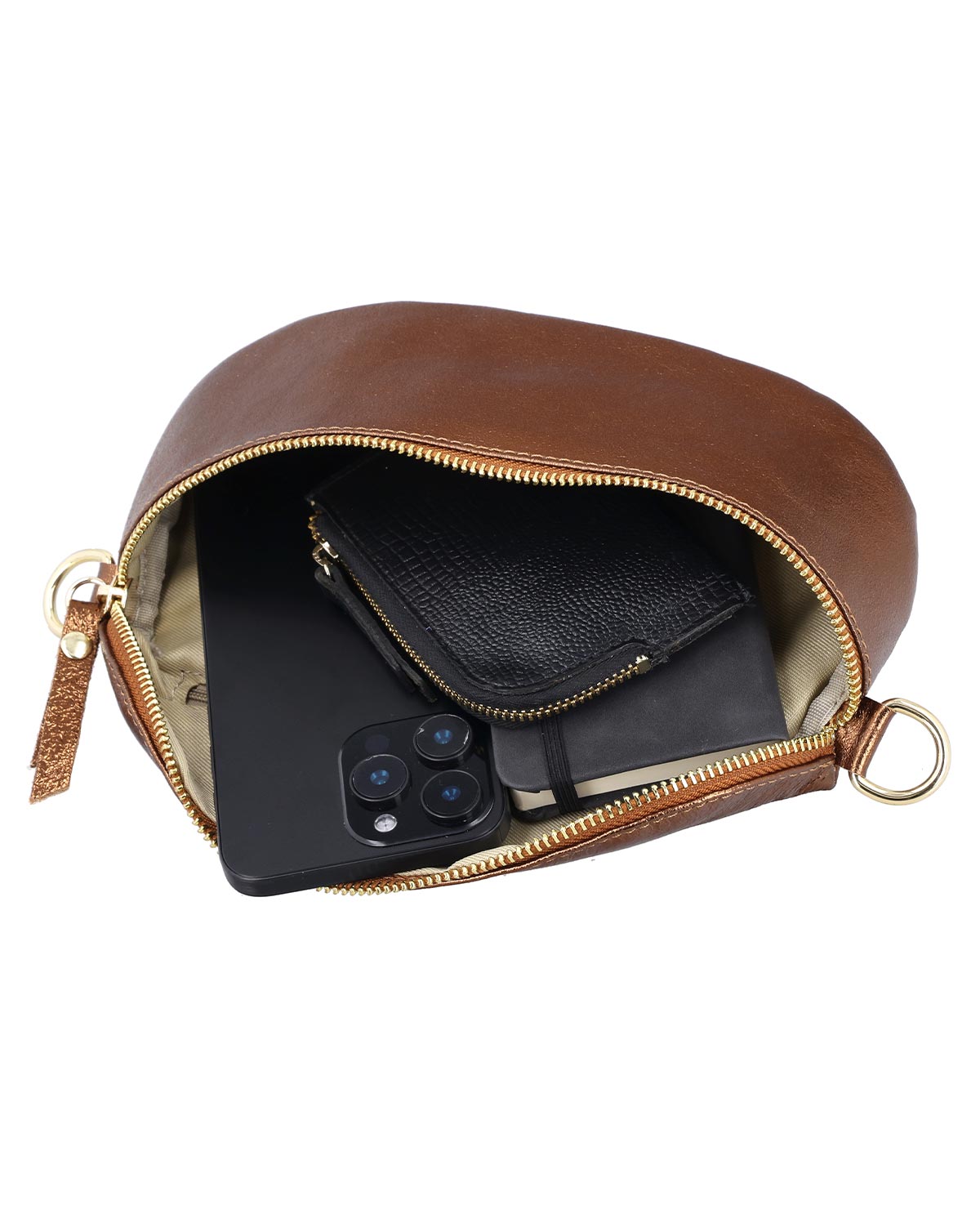 "Brinja" olkalaukku hurmaa tyylikkäällä muotoilullaan ja korkealla toiminnallisuudellaan. Tunnusomainen, puolipyöreä siluetti ja täysi vetoketju yläreunassa tarjoavat paitsi riittävästi tilaa tärkeimmille tavaroillesi, myös turvallisuutta kaikille henkilökohtaisille esineillesi. Laadukas nahka antaa laukulle tyylikkään ilmeen, joka sopii täydellisesti moderniin arkeesi. Sisäpuolella on myös hienosti painettu "Made in Italy" -logo, joka korostaa tämän laukun alkuperää ja laatua vaikuttavalla tavalla.