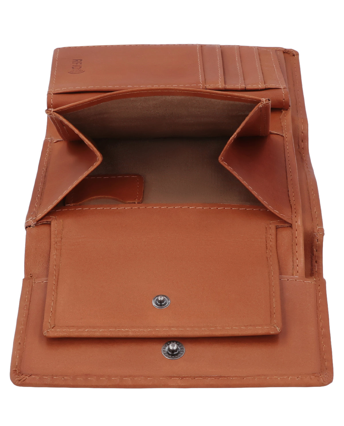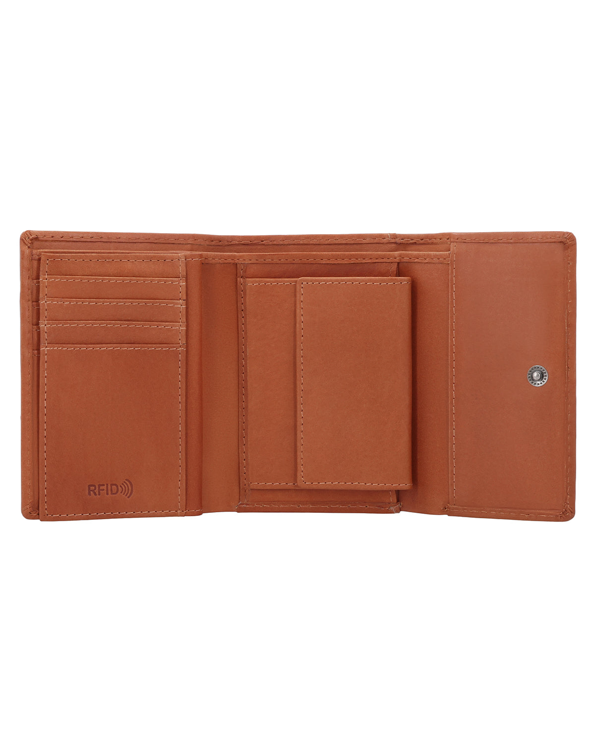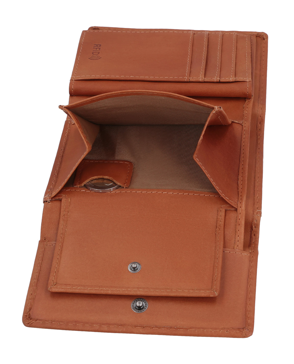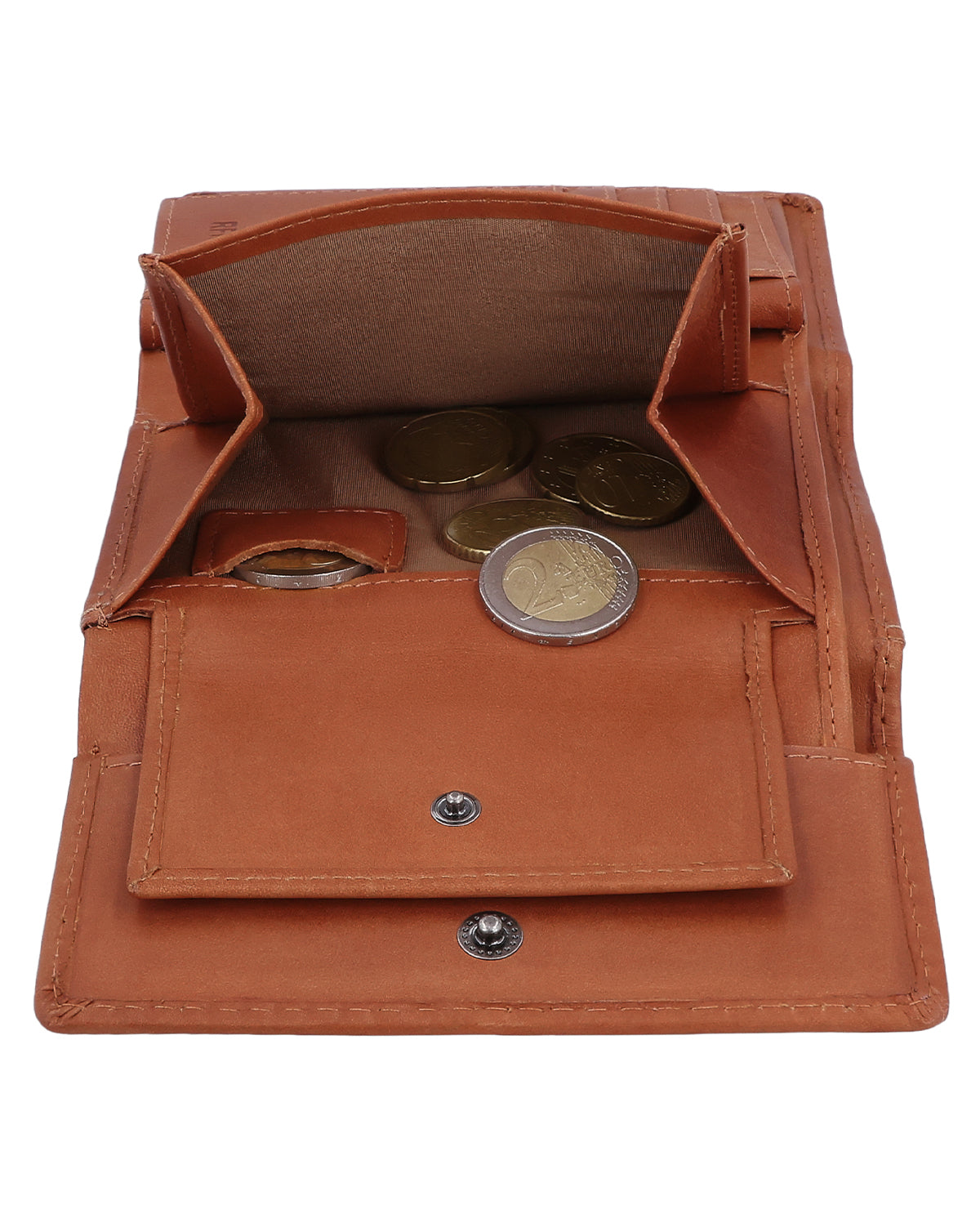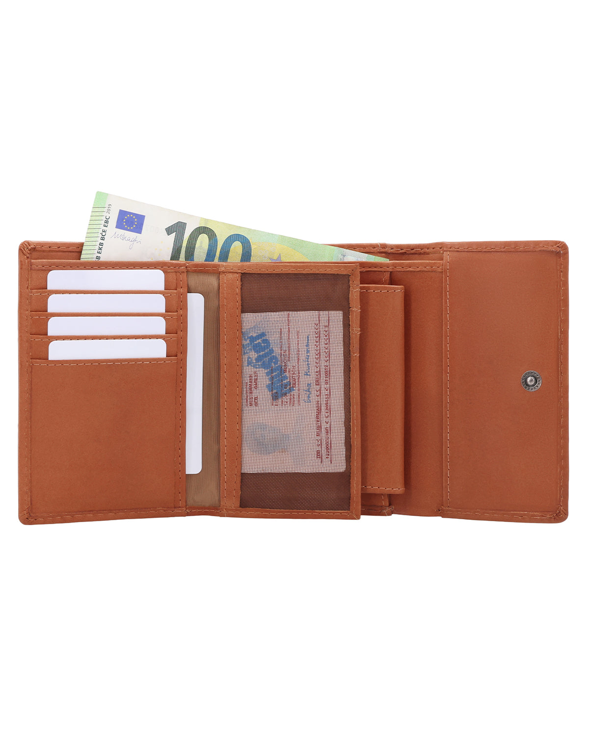 Mit "Tessa" ist schnelles Verstauen von Rückgeld an der Kasse kein Problem mehr. Immerhin dauert es ja meistens schon lange genug, bis die Einkäufe eingepackt sind. Ob du nun lieber mit Karte oder bar bezahlst: alles ist schnell griffbereit und ebenso schnell wieder im Portemonnaie verschwunden. Unsere Geldbörse besteht aus robustem Rindsleder und kann mit einem Druckknopf verschlossen werden. Dank integriertem RFID-Schutz sind deine Karten dabei zusätzlich vor ungewolltem Auslesen geschützt. Für den kleinen Alltagsmoment gibt es außerdem ein extra Münzfach für eine einzelne Münze – perfekt, wenn du schnell eine passende Münze griffbereit haben möchtest. Das Logo ist außen geprägt und verleiht "Tessa" einen noch hochwertigeren, cleanen Look. Auf der Rückseite befindet sich sogar noch ein zusätzliches Fach für zum Beispiel Fahrkarten, so brauchst du auch in der Bahn nicht lange zu suchen, wenn der Schaffner auf Kontrollgang ist. Außerdem findest du dein Ticket direkt und die Zeiten des "Hilfe, ich habe mein Ticket verloren"-Gedankens sind endlich Teil der Vergangenheit!