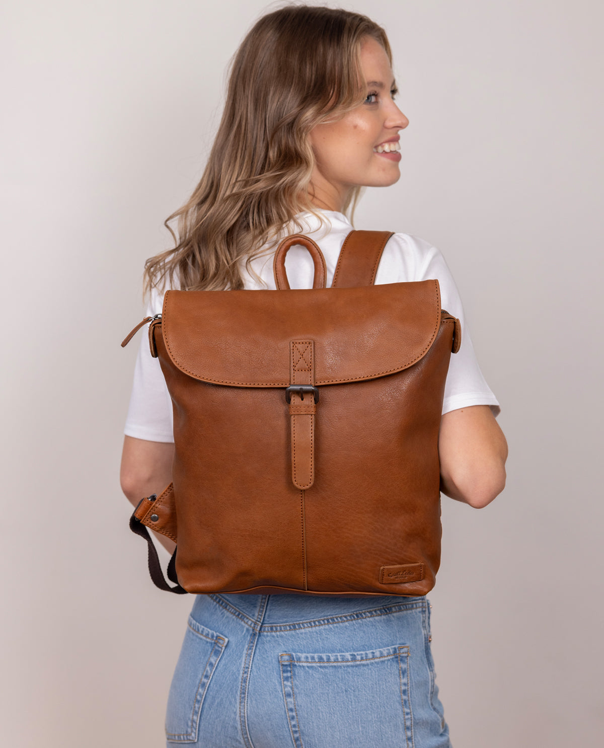 Rucksack Lederrucksack mit Reißverschluss und Schnalle diebstahlsicher Designed in Berlin Braun Leder Damen Herren