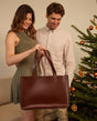 Das extragroße Innenfach von Agatha hat genug Raum für dein 15 Zoll Notebook, deine Trinkflasche, Geldbörse, Notizbücher, Schlüssel und Stifteetui. Zudem bietet die große Öffnung genügend Stauraum für einen spontanen Einkauf. Die Tragehenkel aus echtem Leder runden das Design ab, während die Möglichkeit, Agatha mit einer Widmung zu versehen, sie zu einem besonders persönlichen Geschenk macht. Diese Tasche wird nicht nur deinem Alltag gerecht, sondern unterstützt auch eine Branche, die sich für Umweltschutz und faire Arbeitspraktiken einsetzt. Ein Must-Have für alle, die Funktionalität und Stil vereinen möchten.