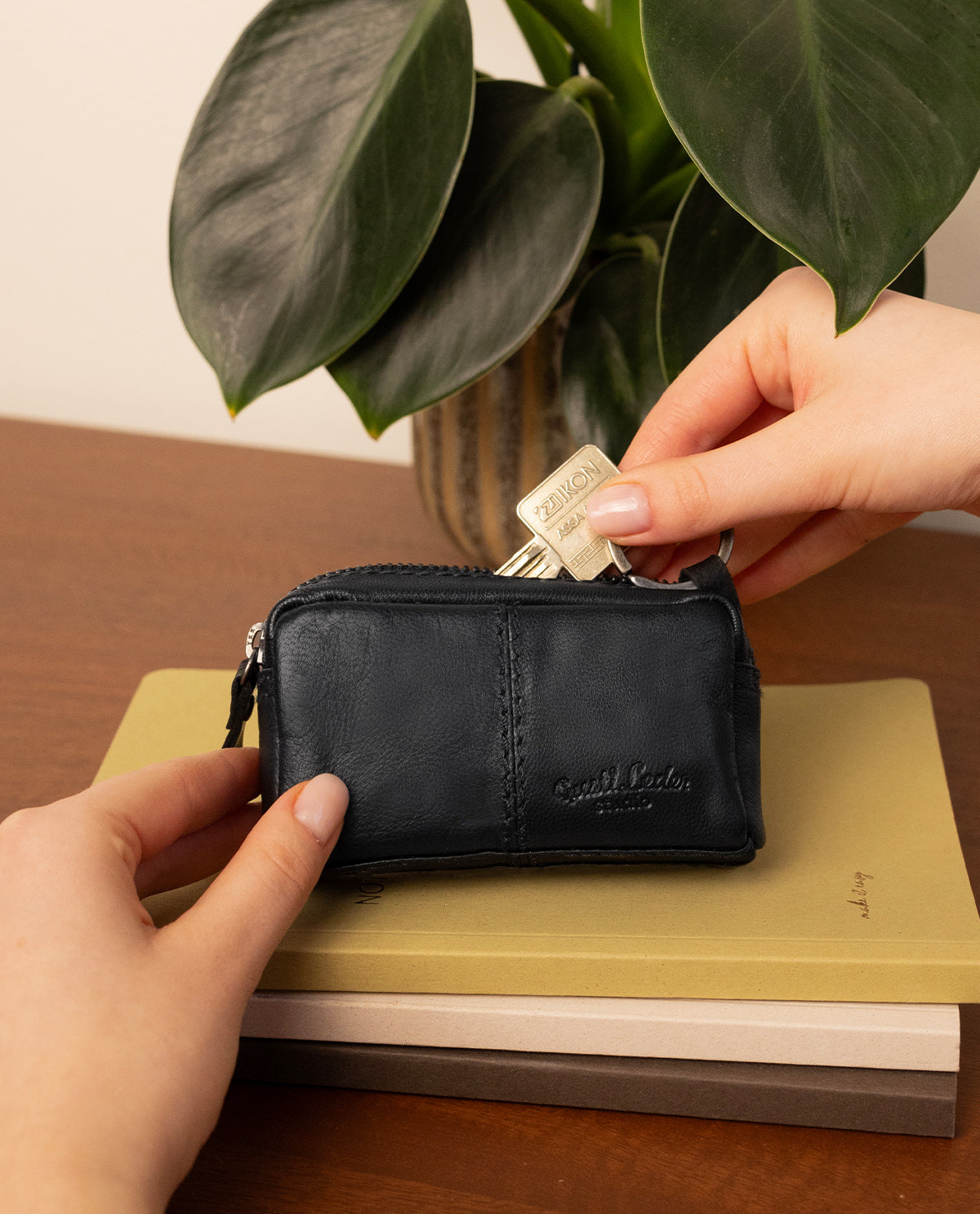 "Butler" ist ein Schlüsseletui, wie es im Buche steht. Denn zum einen ist es eine praktische und handliche Verwahrmöglichkeit für Deinen Schlüsselbund, um Deinen restlichen Tascheninhalt vor dem Zerkratzen durch die Schlüsselzähne zu schützen, zum anderen bietet es Dir dank des zusätzlichen Reißverschlussfachs eine Möglichkeit, ein wenig Geld zu verwahren, wenn Du Dein Portemonnaie mal nicht mitnehmen möchtest.