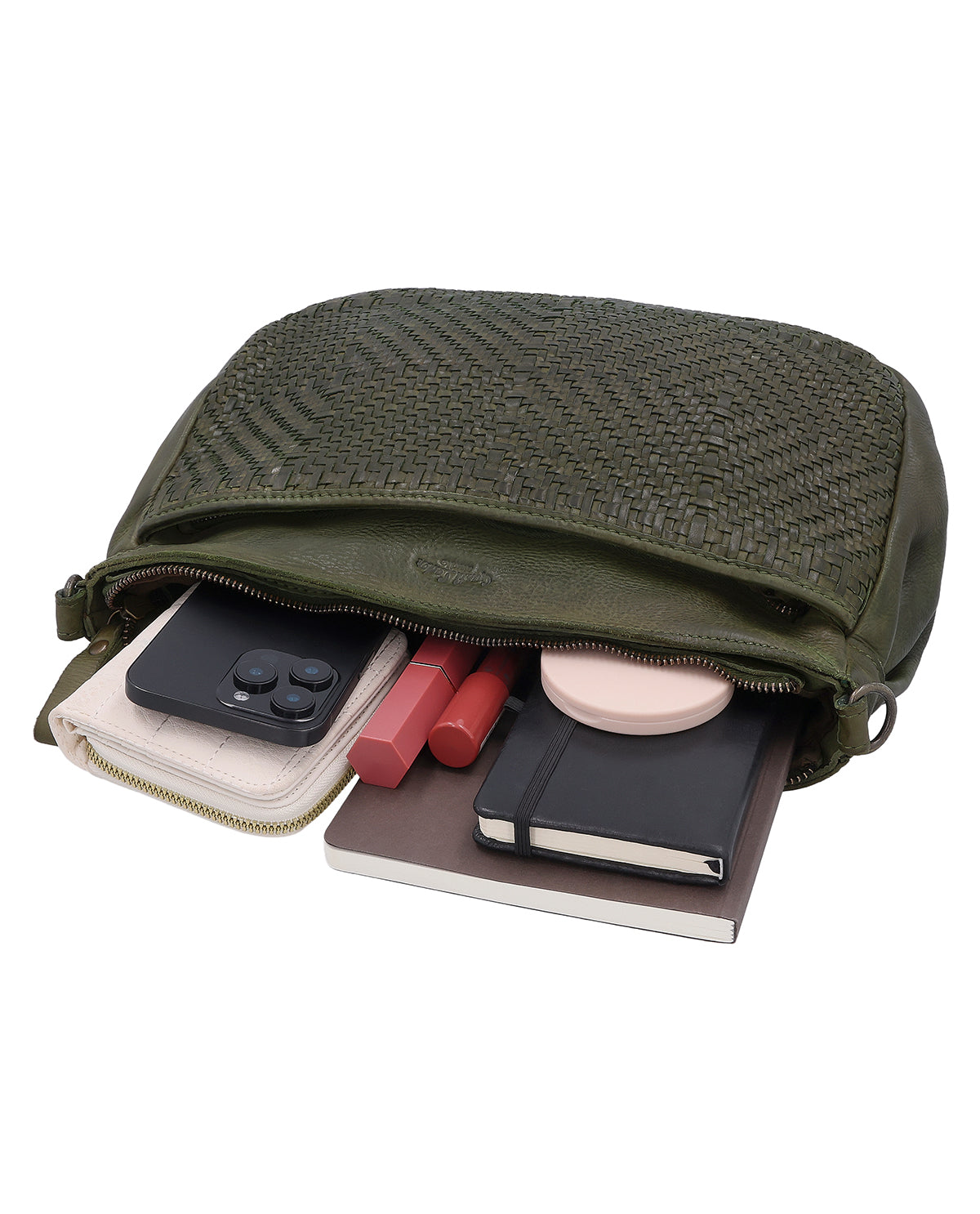 Die große Handtasche „Ulla“ ist eine Lederhandtasche für Damen, die im Alltag gern alles dabeihaben und dabei nicht auf Stil verzichten möchten. Das grüne, gewaschene Leder verleiht der Tasche eine weiche, lebendige Optik und macht jede „Ulla“ zu einem Unikat. Als großzügige Ledertasche bietet sie viel Platz für alles, was Dich durch den Tag begleitet – strukturiert, übersichtlich und angenehm zugänglich. Ein verborgenes AirTag-Fach gibt Dir zusätzliche Sicherheit, während das klare Design dafür sorgt, dass die Handtasche trotz ihrer Größe ruhig und modern wirkt.