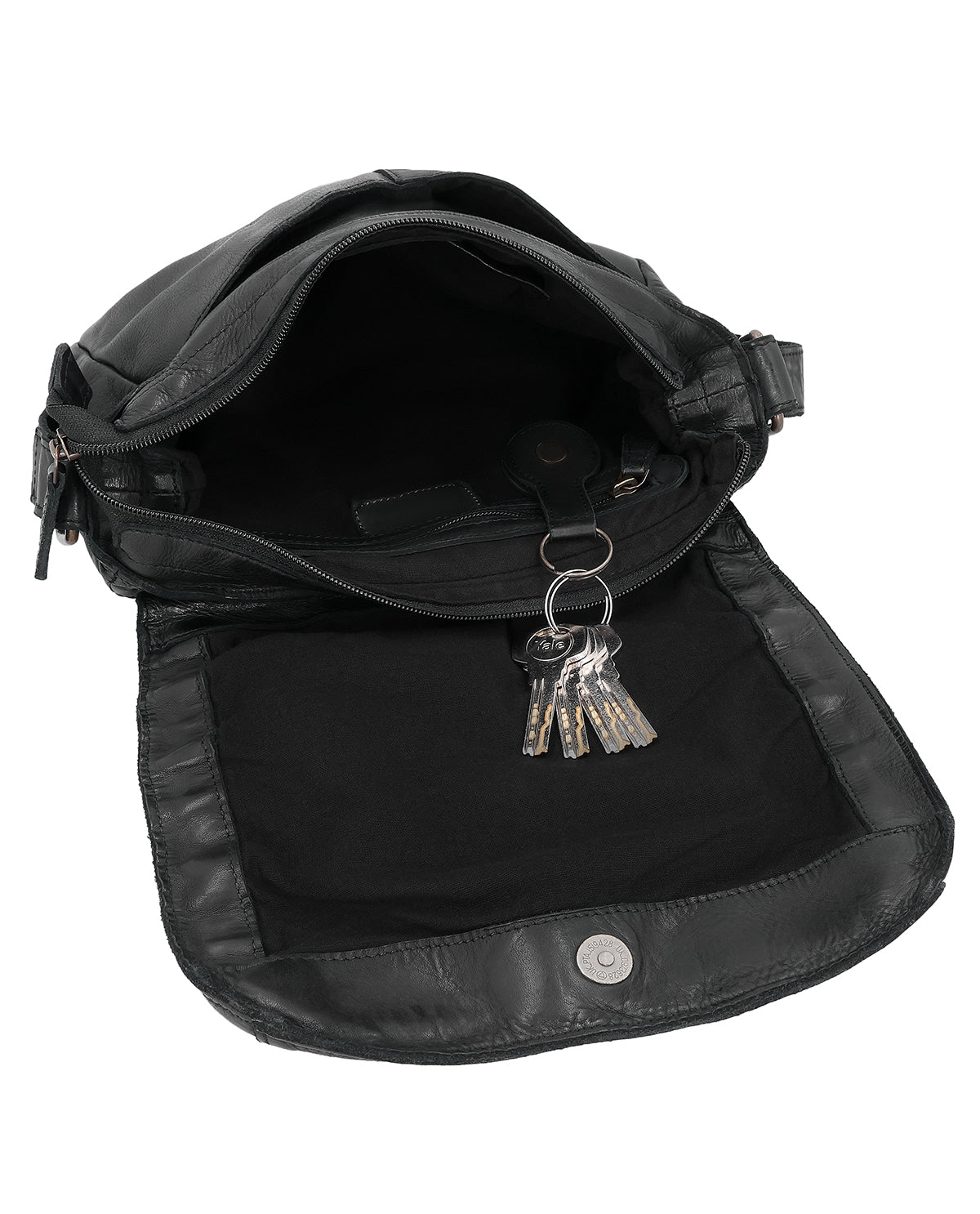 Im Inneren bietet „Aliya“ ein Reißverschlussfach sowie ein zusätzliches Steckfach, um Deine Essentials übersichtlich zu verstauen. Ein abnehmbarer Schlüsselanhänger hält wichtige Dinge griffbereit, während ein weiteres Steckfach außen und ein Reißverschlussfach auf der Rückseite schnellen Zugriff ermöglichen. Das Hauptfach wird sicher per Reißverschluss geschlossen. Ein Gravur-Patch macht es möglich, die Tasche individuell zu personalisieren. „Aliya“ ist eine kleine Lederhandtasche für Damen, die Design, Struktur und Alltagstauglichkeit harmonisch vereint.