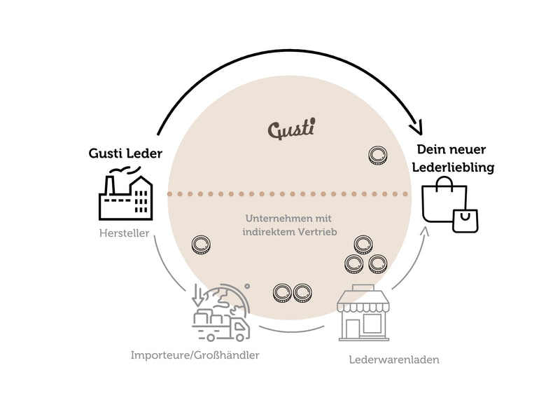 Wir nutzen verschiedene Strategien, um die Kosten bei der Entwicklung und Herstellung unserer Produkte zu senken. Einer der wichtigsten Aspekte dabei ist, dass wir alle Arbeiten selbst durchführen. In der Lederindustrie werden die Produkte oft von Vertretern der Hersteller, auf Messen oder durch Importe bezogen. Wir umgehen diesen Schritt und beziehen unsere Produkte direkt von unseren Herstellern, wodurch eine enge Geschäftsbeziehung entsteht. Dies ermöglicht uns eine regelmäßige Kontrolle der Ware sowie der Bedingungen vor Ort in den Produktionsstätten.