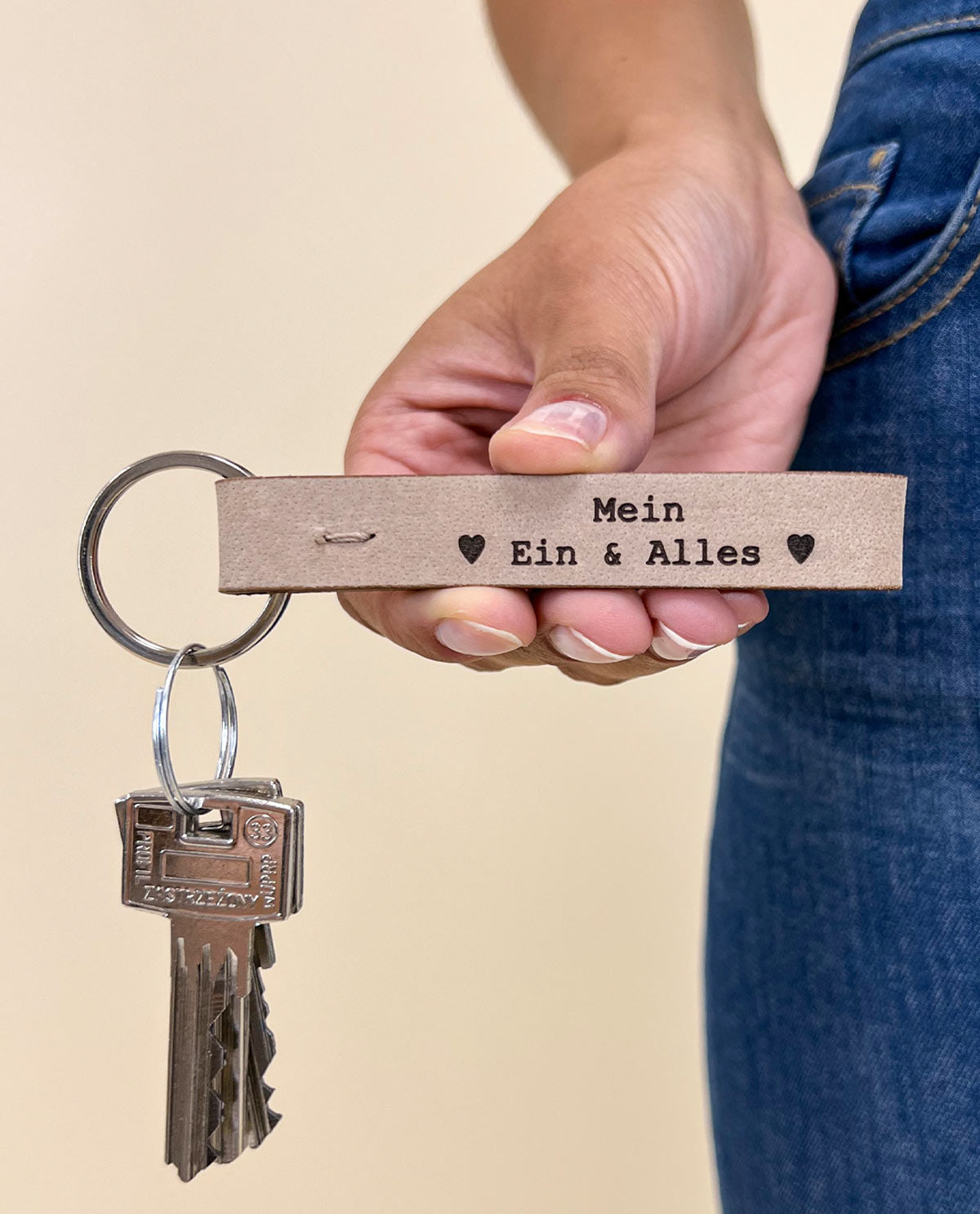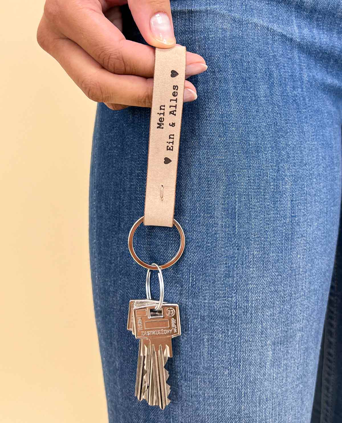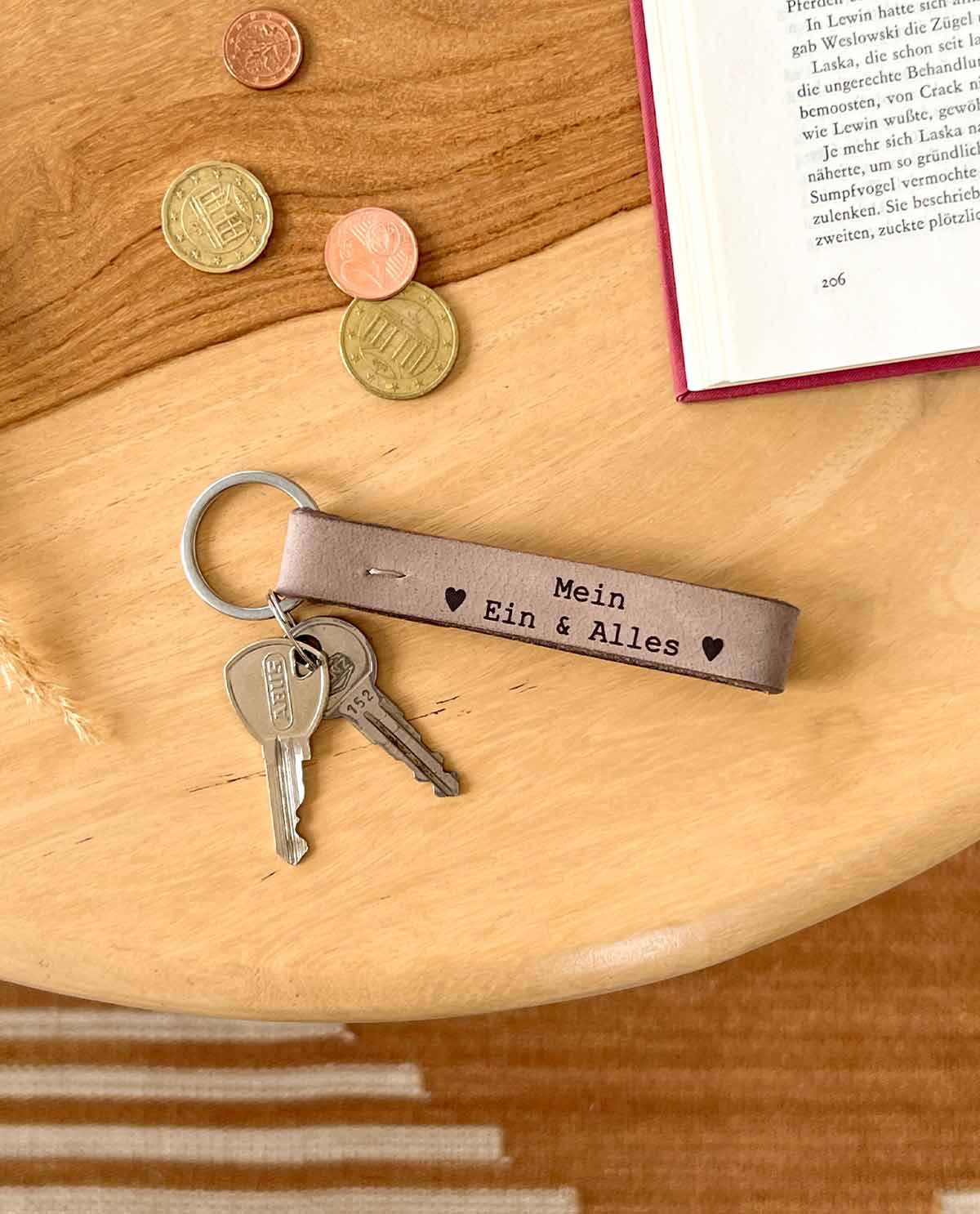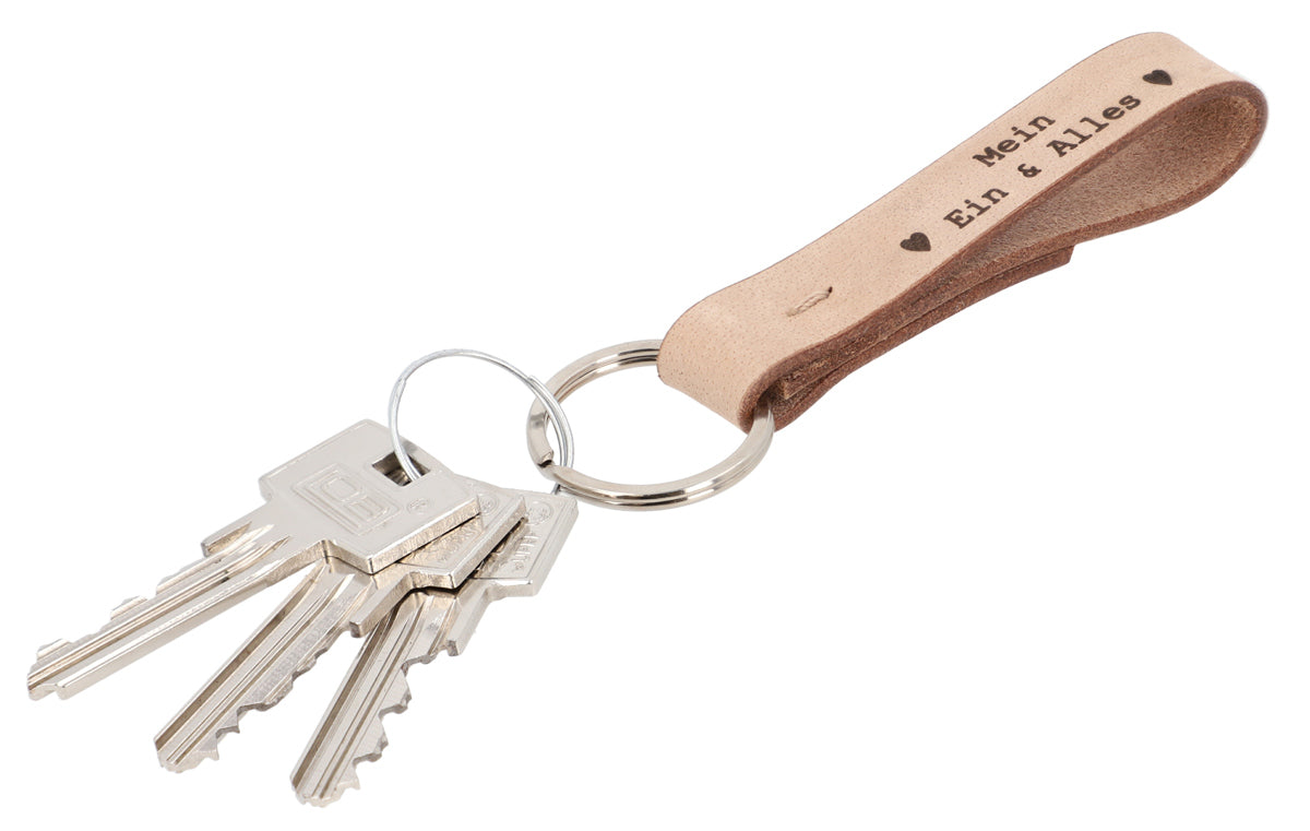 Unser Schlüsselanhänger "Aaron" ist das ideale Geschenk für Deine Lieblingsmenschen. Gefertigt aus 100% echtem Büffelleder ist der Schlüsselanhänger nicht nur sehr stabil und zugleich weich, sondern erstrahlt auch im angesagten Vintage-Look. Ob für Wohnungs-, Garten- oder Arbeitsschlüssel – mit "Aaron" machen alle Schlüssel eine gute Figur und sind im Handumdrehen in Deiner Handtasche oder Deinem Rucksack griffbereit. Durch die Gravur erhält Dein Freund oder Deine Freundin nicht nur ein praktisches, sondern auch ein ganz persönliches Geschenk.