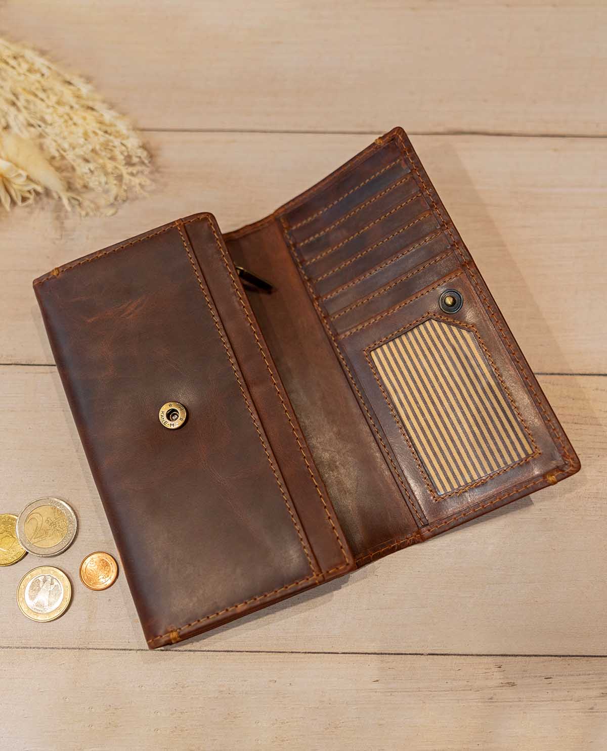 Entdecke unsere hochwertige Damen-Geldbörse "Angelique" aus braunem Leder – ein eleganter Begleiter, der Design und Funktionalität perfekt vereint. Inspiriert durch den urbanen Berliner Flair ist sie ideal für Deinen Alltag, ob beim Stadtbummel, im Café oder auf Reisen. Das echte, strapazierfähige Leder sorgt für eine edle Optik und eine angenehme Haptik, die mit der Zeit noch schöner wird. "Angelique" steht für Stil, Qualität und Organisation – alles, was Du von einer modernen Geldbörse erwartest.