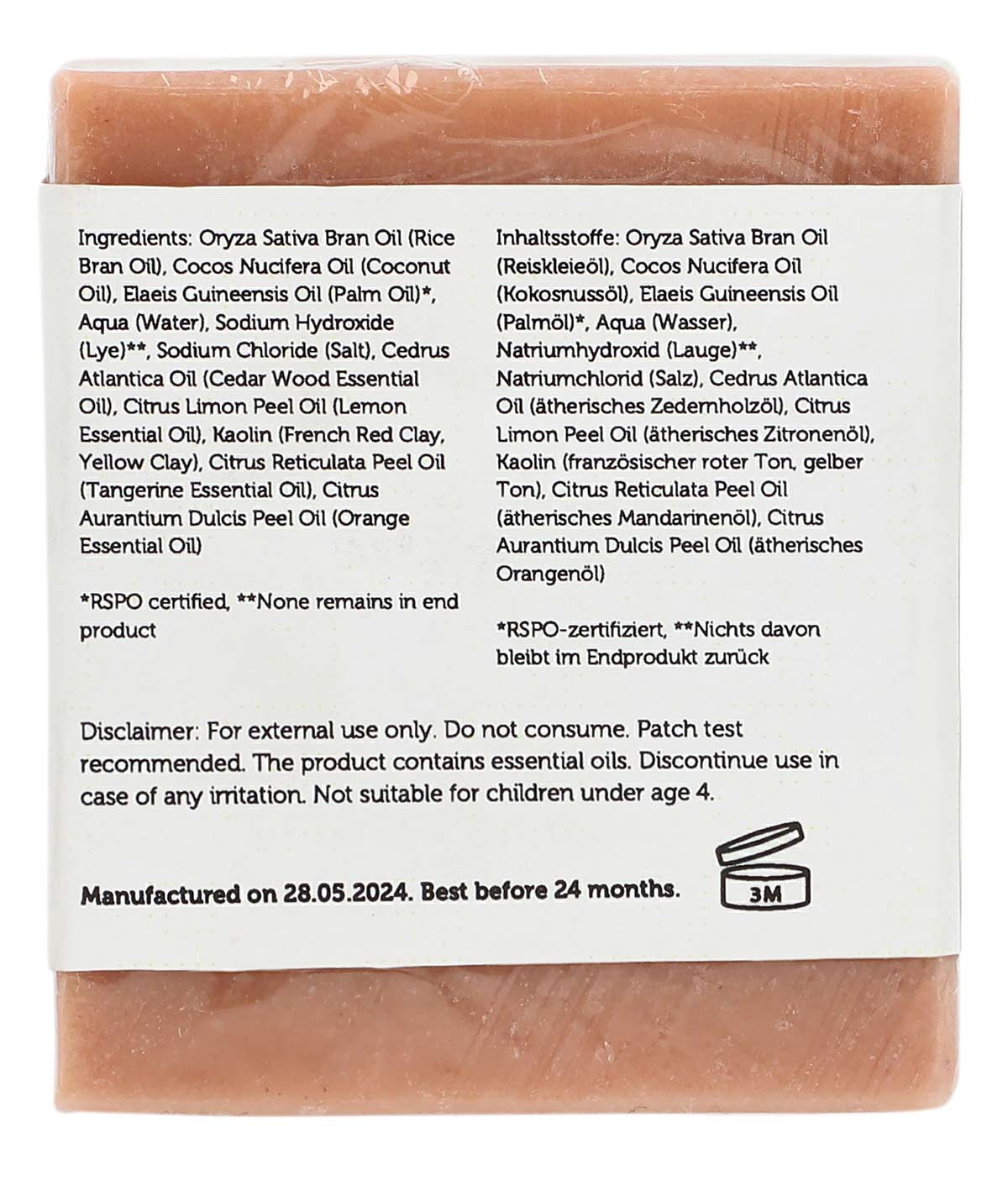 Angereichert mit roter und gelber Tonerde sowie Kaolin, entfernt die Seife Unreinheiten und schützt die Haut. Sie ist RSPO-zertifiziert, sodass das Palmöl aus nachhaltigen Quellen stammt.
