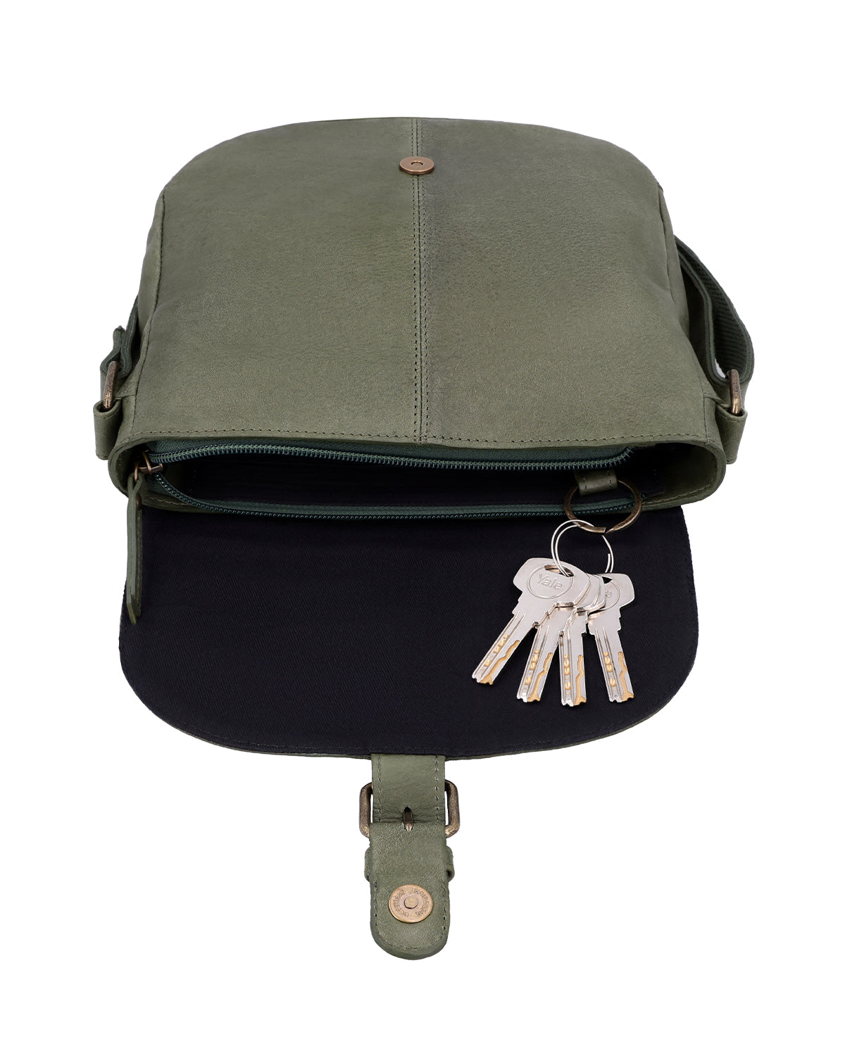 „Candice“ begeistert durch ihr harmonisches Design und bietet gleichzeitig überraschend viel Stauraum. Neben Portemonnaie, Smartphone und Schlüsseln passen sogar ein eBook-Reader oder ein klassisches Taschenbuch hinein. Das rückseitige Reißverschlussfach schützt Deine wichtigsten Habseligkeiten nah am Körper, während das äußere Zipperfach schnellen Zugriff auf oft benötigte Dinge ermöglicht. Der Magnetverschluss in Dornschnallenoptik sichert das Hauptfach zuverlässig. Der bodenständig-schicke Vintage-Look macht „Candice“ zum perfekten Begleiter für Spaziergänge, Städtetrips und Kaffeedates. Mit jeder Nutzung erweist sie sich als treue Begleiterin, gefertigt unter fairen, nachhaltigen Bedingungen – für Stil, Funktion und bewusstes Handeln.