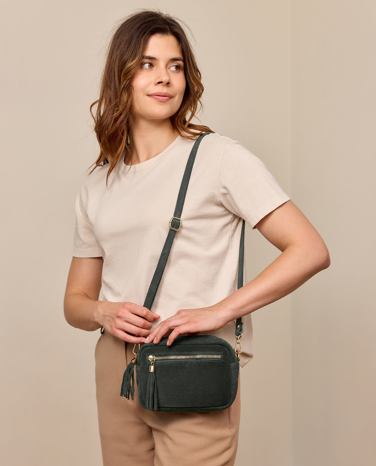 Umhängetasche Ledertasche Handtasche Crossbody Tasche Damen Dunkelgrün Leder - Made in Italy