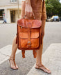 This special backpack is a real eye-catcher, not least because of its striking shape and trendy vintage style. The genuine buckle fasteners not only give it a cool look, but also secure the contents of your backpack, while the adjustable and padded shoulder straps offer excellent carrying comfort. A short carrying handle also makes "Eleanor" ideal when you want to quickly grab it and go. An integrated engraving patch is provided for your personal touch. The high-quality, vegetable-tanned goat leather used for "Eleanor" comes exclusively from animals that are 100% free-range and stands for slow fashion – a responsible choice that will accompany you for many years to come.