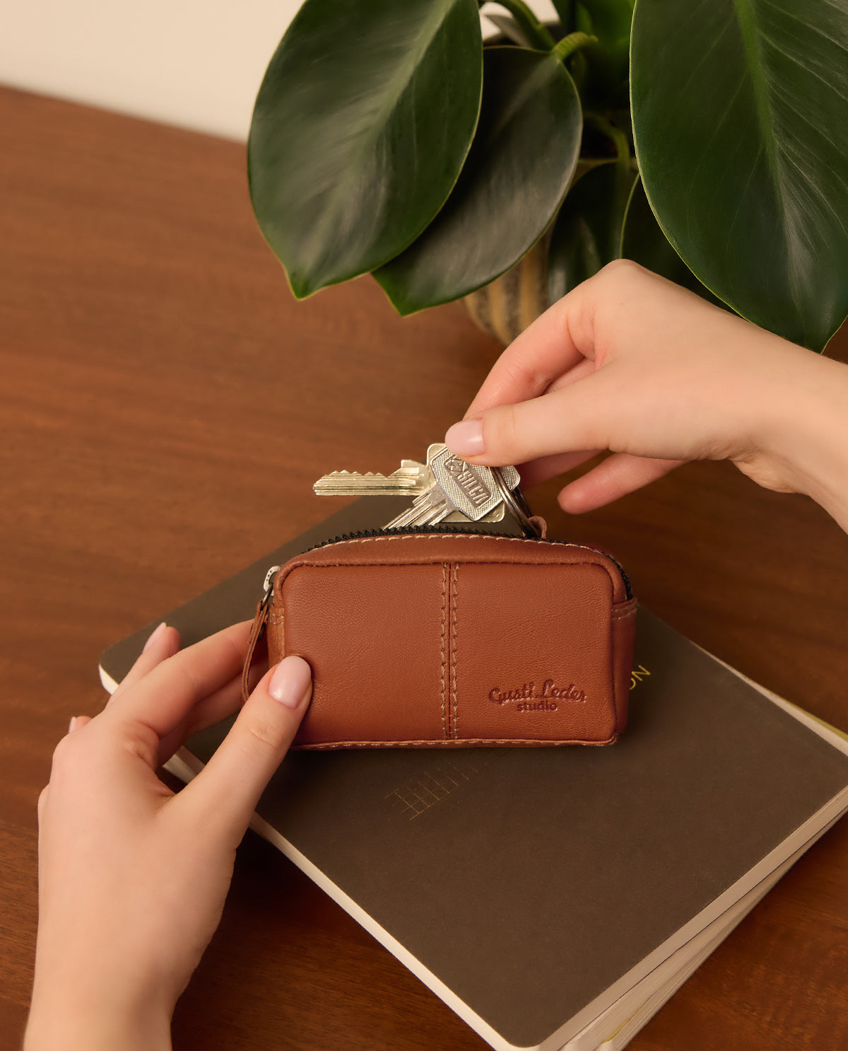 “Butler” is a textbook example of a key pouch. It is a practical and handy storage option for your key ring, protecting the other things in your bag from being scratched and damaged by your keys. It’s also perfect for storing some spare change if you don’t want to take your wallet with you, thanks to its extra zipped pocket.
