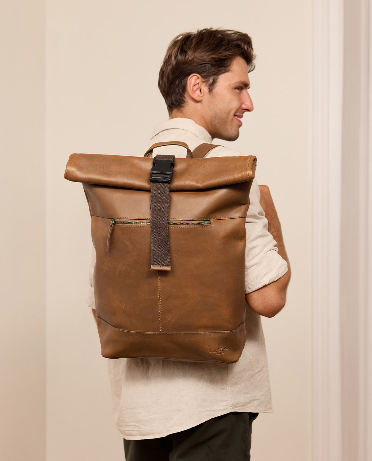 Our “Mattis” roll top backpack is the perfect companion, no matter if you’re going to school, uni or work. He’ll win you over with his versatility, comfort, and space. This sturdy classic dark brown buffalo leather daypack stands out from the crowd with its trendy roll top - a look that you just can’t ignore at the moment.