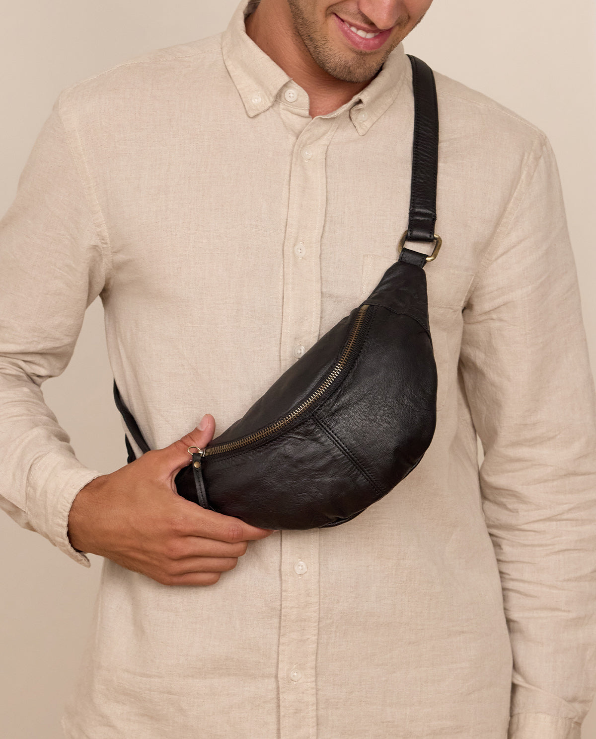 Handbag too big but pockets not big enough? We've got the perfect solution. “Cillian” can go with you to events where a big bag would just get in the way. Who wants to wear a cross body bag to a concert? Handbags just get in the way when you're dancing! “Cillian” helps you keep your essentials close by. There’s plenty of space in this sheep leather belt bag for your phone, keys, and cash. Wear it around your waist or casually over your shoulder. It's up to you! “Cillian's” minimalist design means you can wear this practical, yet stylish, bag with any outfit. Summer's on the way. So get ready for your next festival!