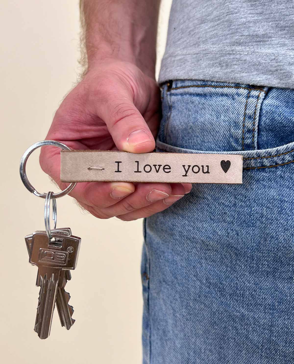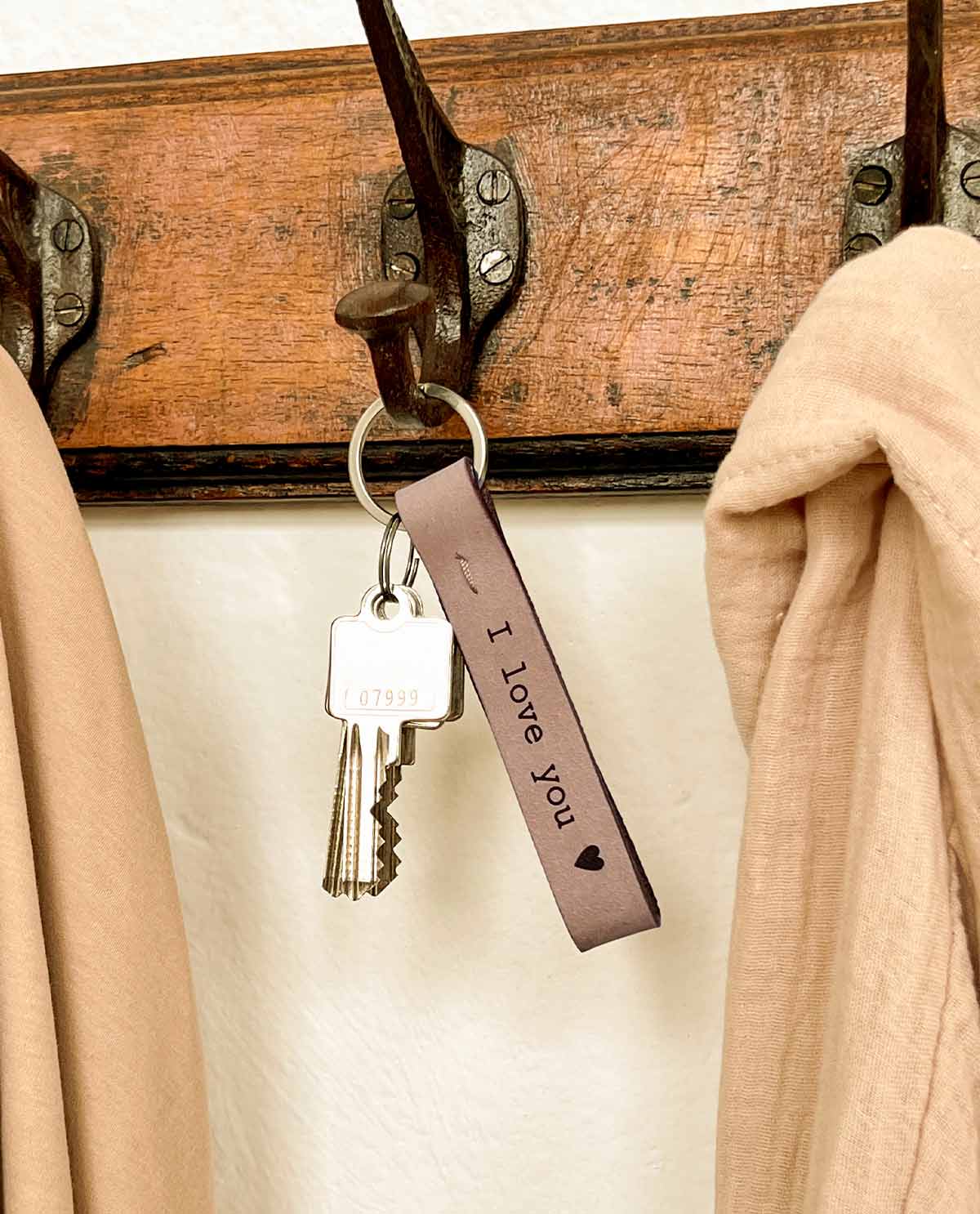 Unser Schlüsselanhänger "Aaron" ist das ideale Geschenk für Deine Lieblingsmenschen. Gefertigt aus 100% echtem Büffelleder ist der Schlüsselanhänger nicht nur sehr stabil und zugleich weich, sondern erstrahlt auch im angesagten Vintage-Look. Ob für Wohnungs-, Garten- oder Arbeitsschlüssel – mit "Aaron" machen alle Schlüssel eine gute Figur und sind im Handumdrehen in Deiner Handtasche oder Deinem Rucksack griffbereit. Durch die Gravur erhält Dein Freund oder Deine Freundin nicht nur ein praktisches, sondern auch ein ganz persönliches Geschenk.