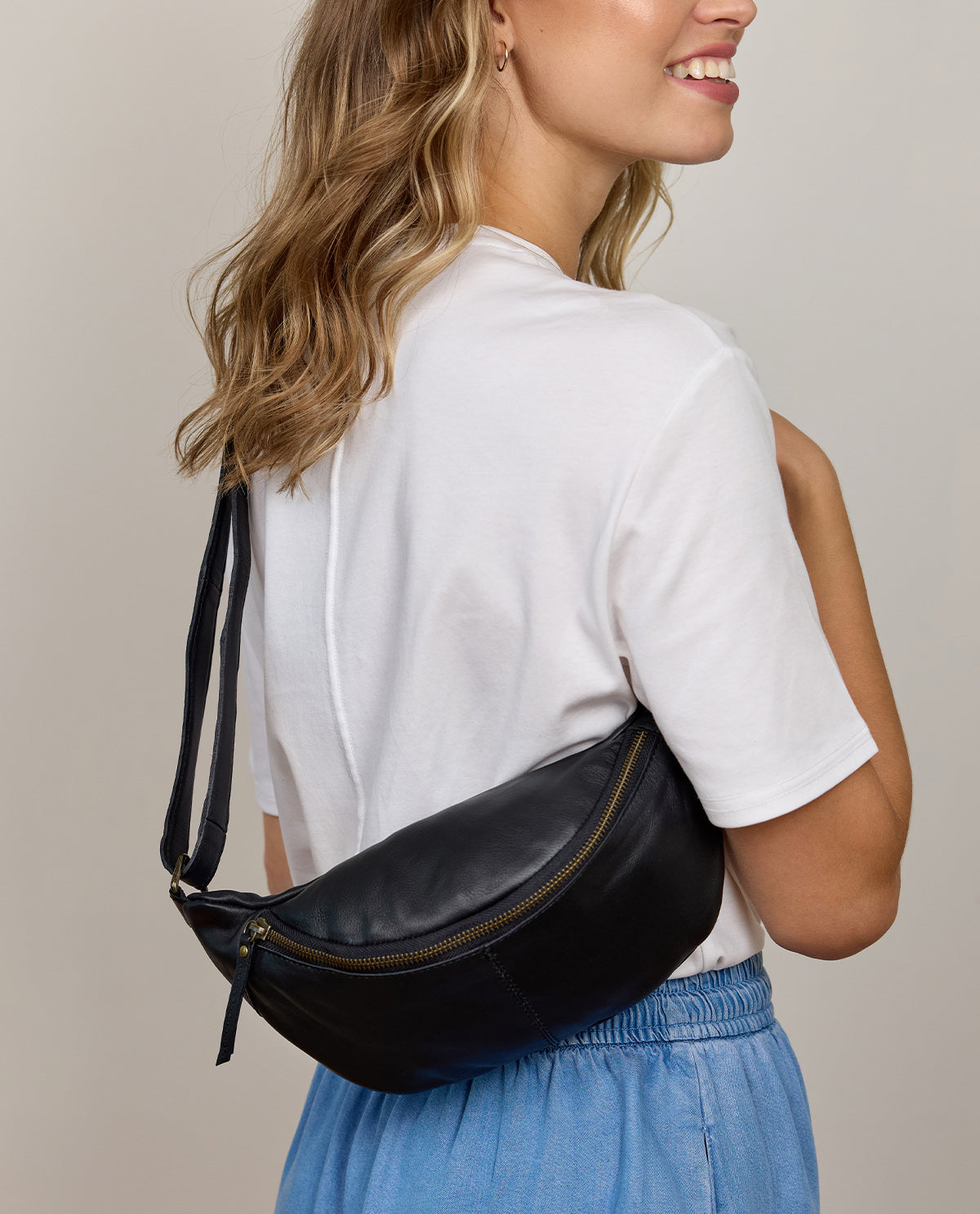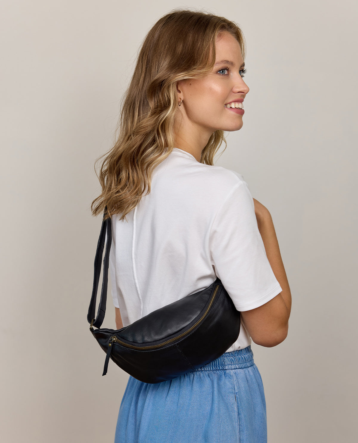 Handbag too big but pockets not big enough? We've got the perfect solution. “Cillian” can go with you to events where a big bag would just get in the way. Who wants to wear a cross body bag to a concert? Handbags just get in the way when you're dancing! “Cillian” helps you keep your essentials close by. There’s plenty of space in this buffalo leather belt bag for your phone, keys, and cash. Wear it around your waist or casually over your shoulder. It's up to you! “Cillian's” minimalist design means you can wear this practical, yet stylish, bag with any outfit. Summer's on the way. So get ready for your next festival!