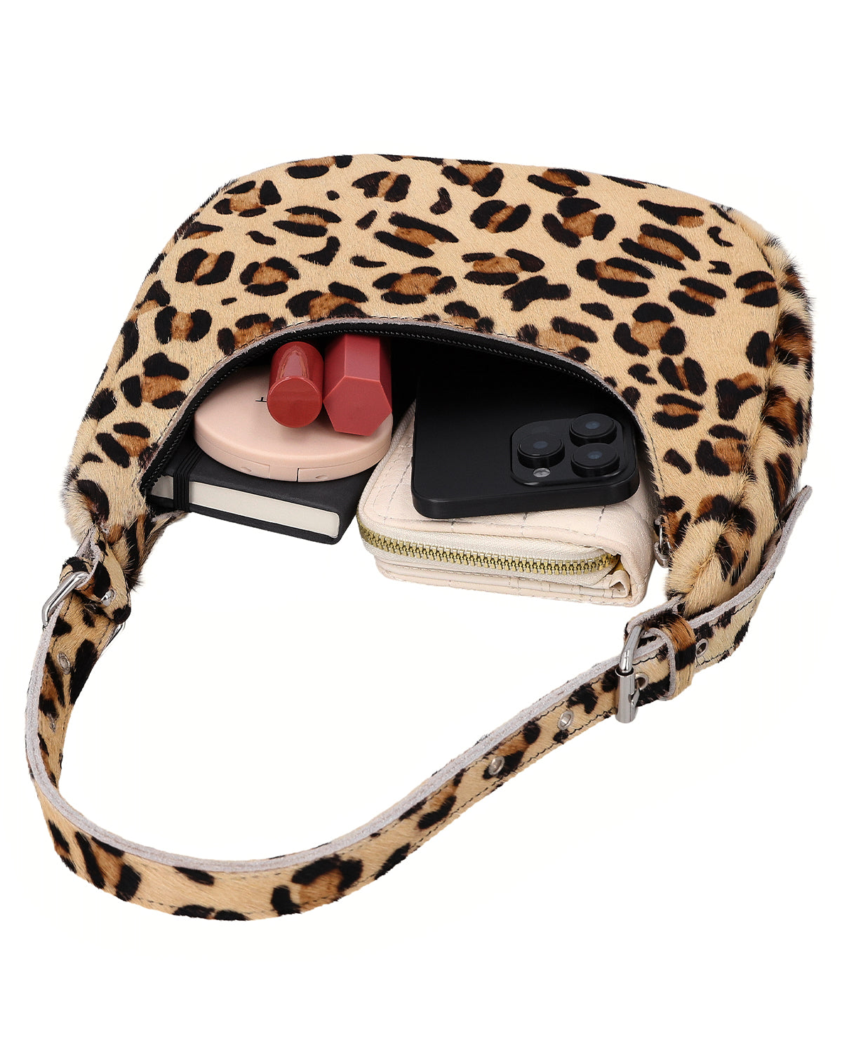 The small "Heike" handbag is a leather handbag for women who want to add a deliberate accent to their look. The striking leopard print makes this leather bag a real eye-catcher and instantly adds character to even the simplest outfits. Despite its compact size, "Heike" has a confident and modern look – perfect for days when you only want to carry the essentials but don't want to compromise on style. This leather handbag combines fashion-forward design with everyday practicality and makes a clear statement.