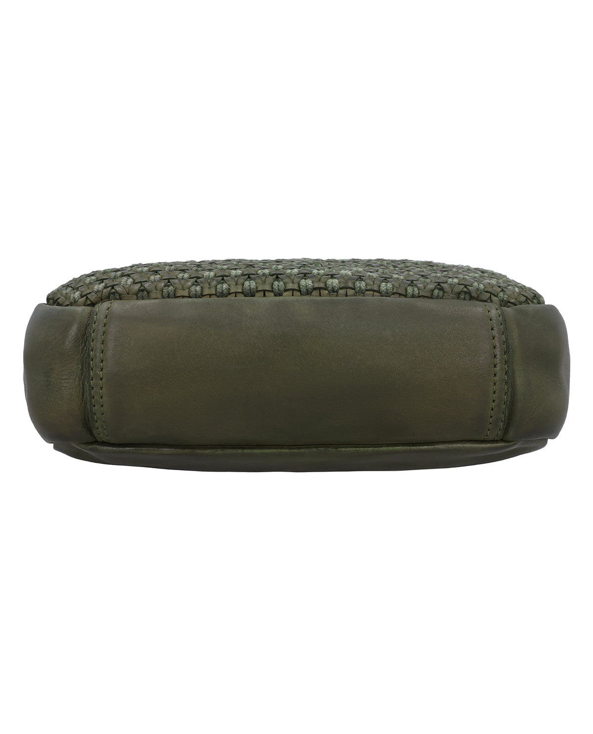 The small "Darina" handbag is a green leather handbag for women that immediately catches the eye with its braided pattern. The structured design gives the bag a special depth and makes it a stylish companion for everyday use and leisure. A hidden AirTag compartment provides additional security, while a removable key ring keeps your essentials close at hand. One main compartment with zipper reliably protects your contents, and thanks to two adjustable and removable straps, you can flexibly adapt "Darina" to your style.