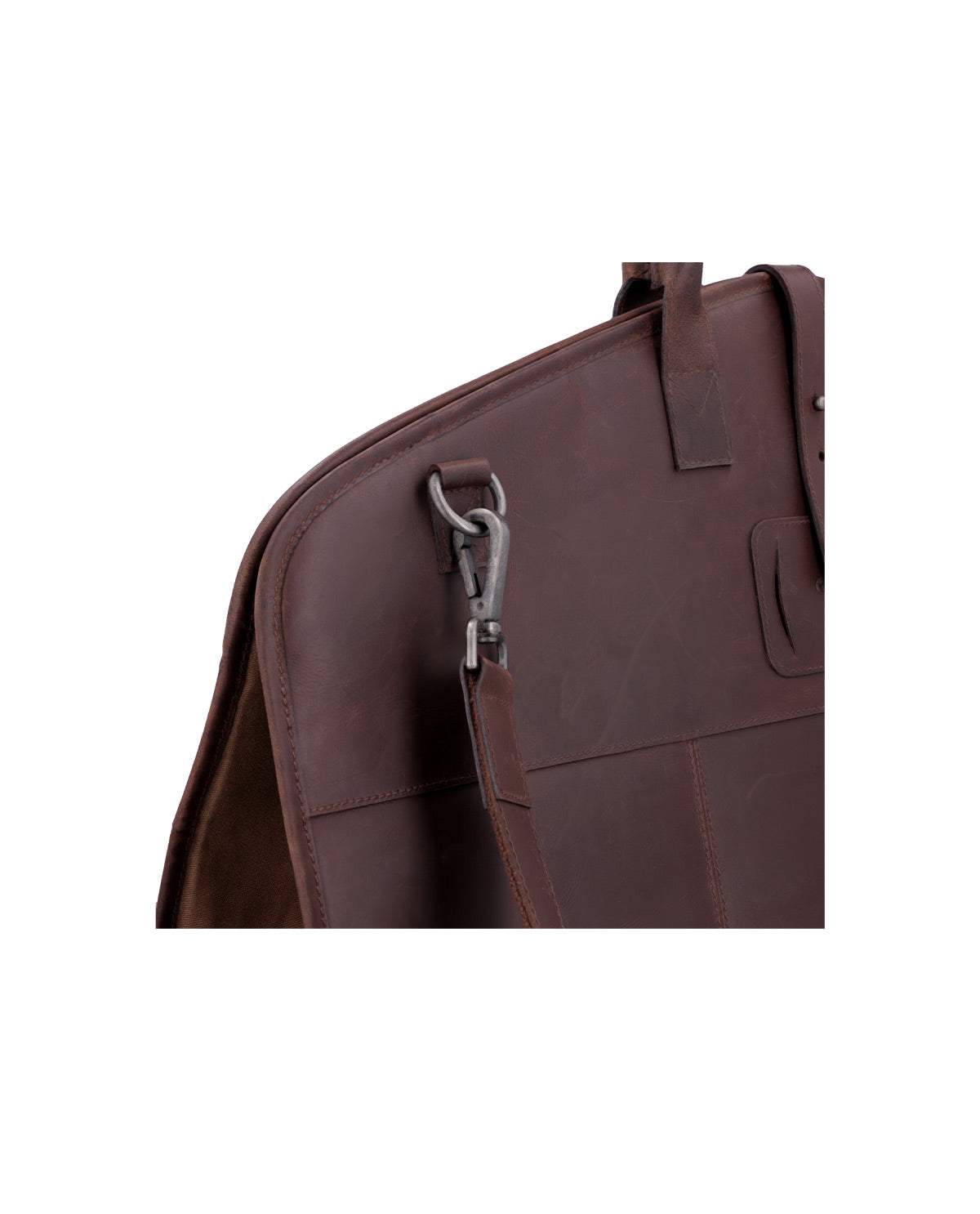 With our high-quality leather bag "Sloan" in charming vintage style, every trip becomes a stylish experience. Lightweight, handy, and thoughtfully designed, it is perfect as a companion on flights or business trips. "Sloan" offers ample space for several suits or garments, which you can conveniently leave hanging on the hanger. Two separate compartments for shoes ensure that your outfits always remain clean and separate. A long zipper allows for easy opening and filling of the bag, while sturdy carrying handles make transport particularly pleasant. Thanks to the integrated hanging hook, you can hang the bag directly in the hotel or closet - practical and space-saving at the same time. The classic retro design, rounded off by the embossed Gusti Leather logo, makes "Sloan" a timeless eye-catcher. Additionally, you can personalize it with an individual engraving - for an extra touch of individuality.