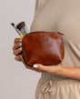 Toiletry bag leather bag make up bag brown leather