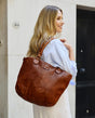 This large brown leather handbag has plenty of space for your belongings. Use it as a handbag, shoulder bag, or tote bag, you'll be impressed by its functionality. There are multiple pockets inside for your belongings.