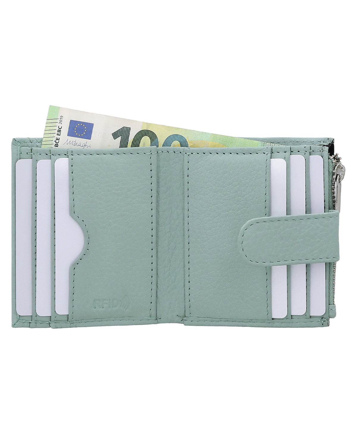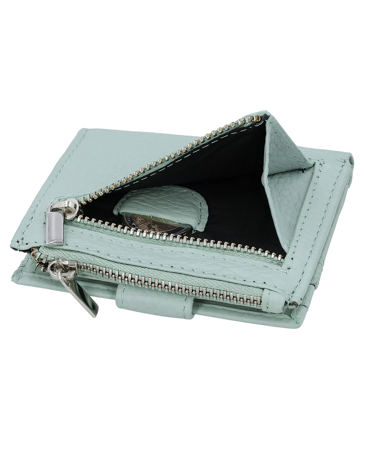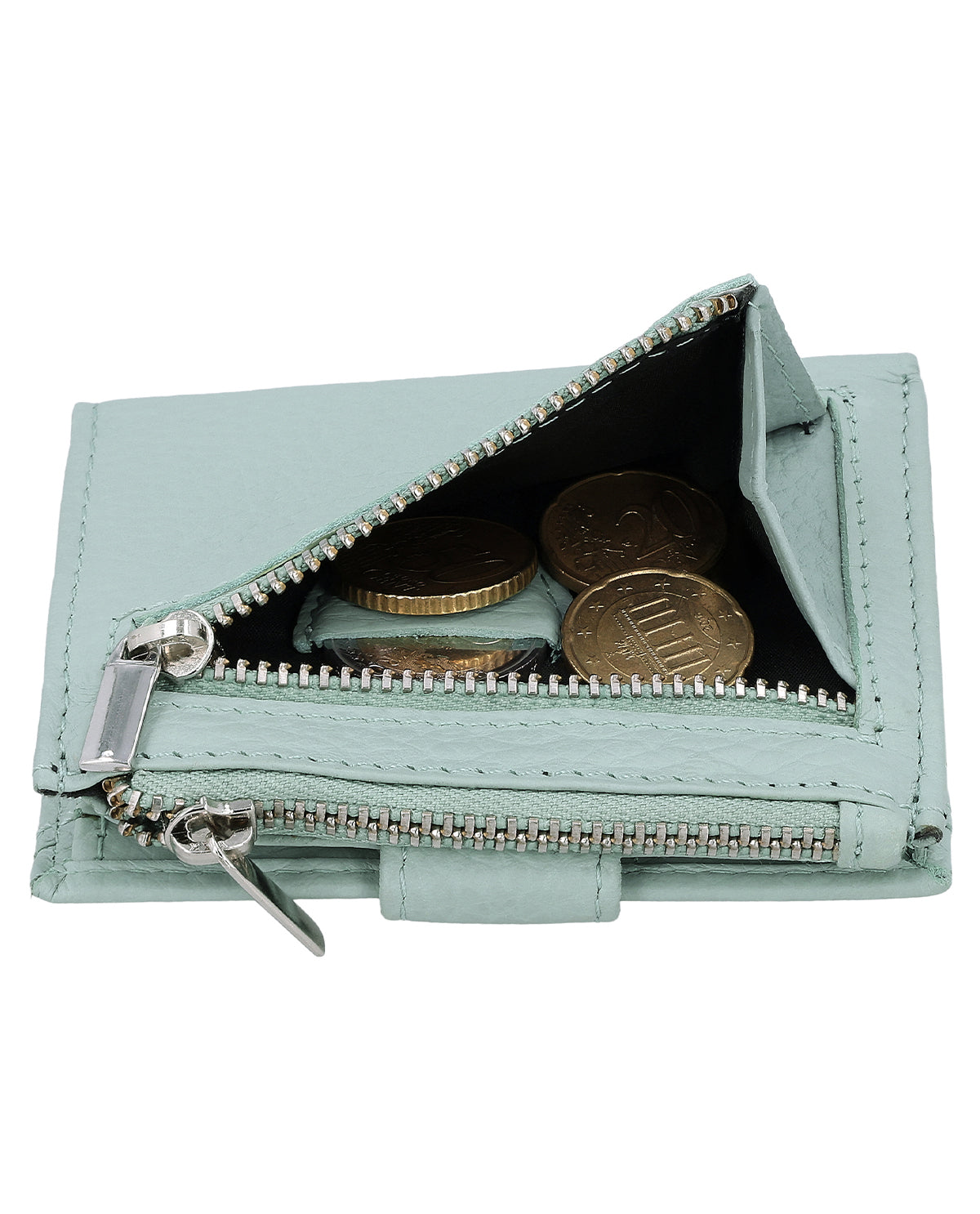 The wallet offers 9 compartments for cards, so you always have everything at your fingertips. Thanks to the snap fastener, your belongings remain safely stowed away. In addition, two zippered compartments ensure secure storage of coins, with a separate slot for a €1 coin integrated into the coin compartment – perfect when you need to pay quickly at the checkout. A reliable companion for your everyday life – elegant, practical, and high-quality.
