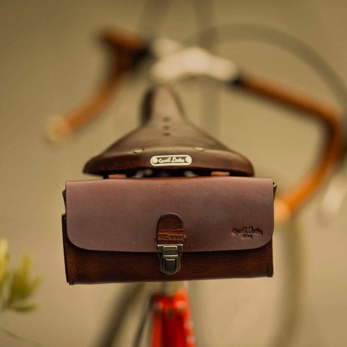Onnellinen pyörä, onnellinen elämä! Lisää pyörääsi ainutlaatuinen retro-sävy nahkasatuloidemme, ohjaustankolaukkujen ja -kahvojen sekä tavaratelinekassien avulla.