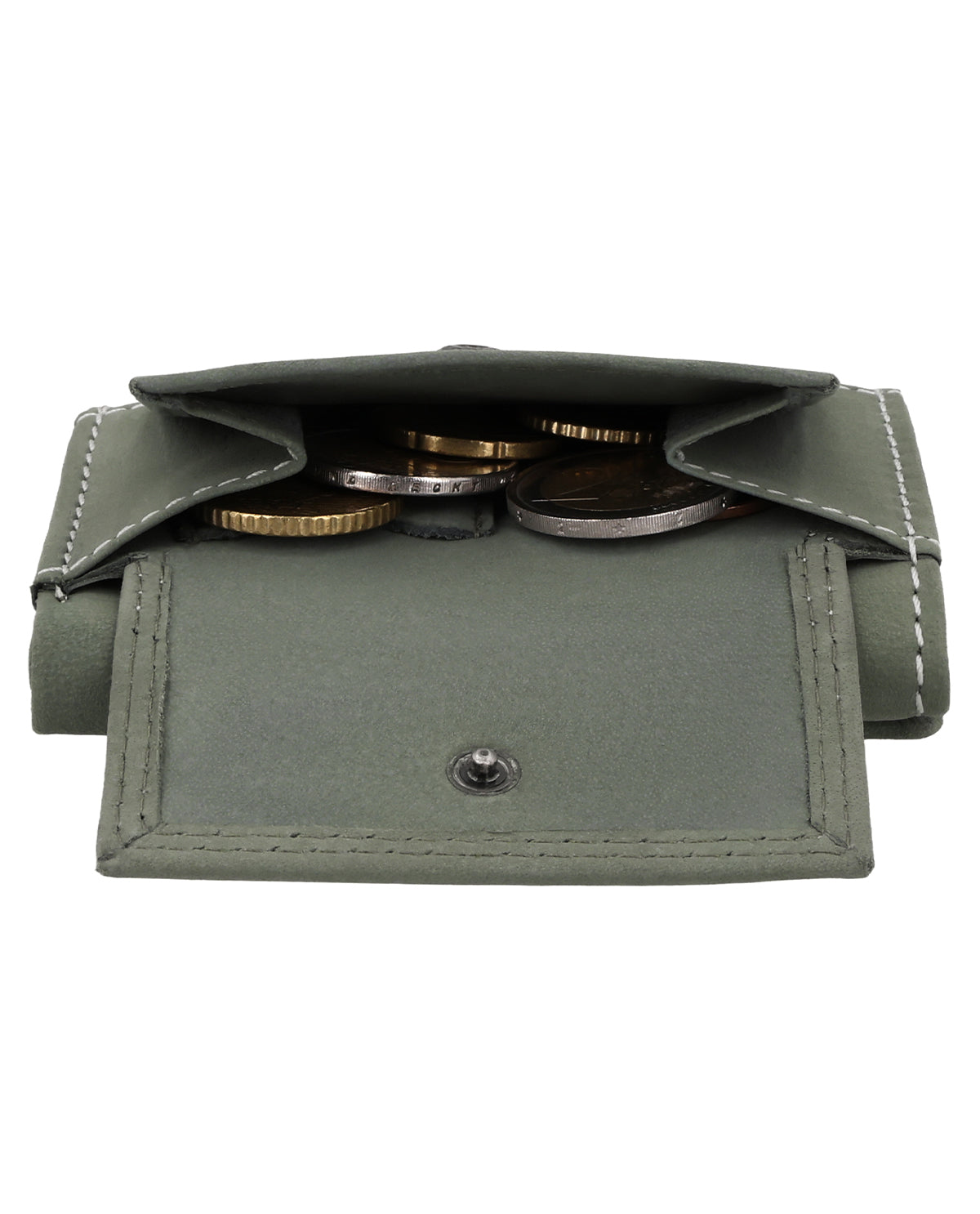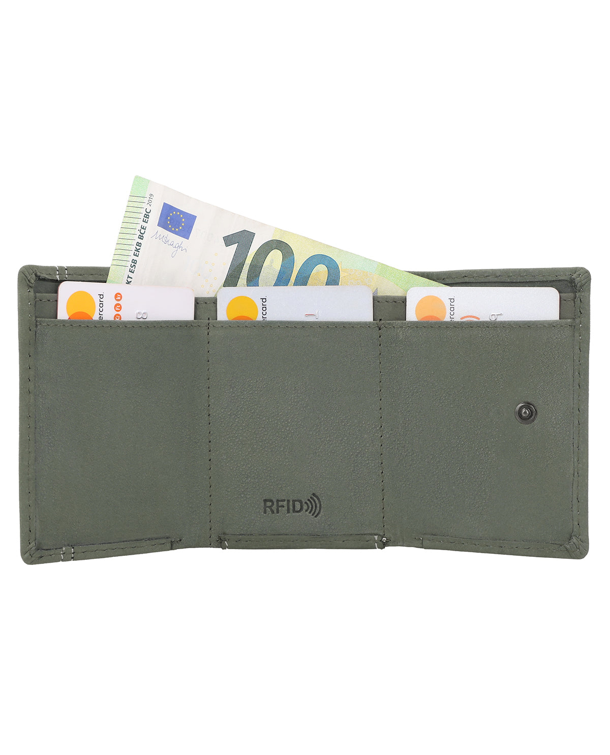 Sisällä lompakossa on 3 korttipaikkaa, setelitasku ja edessä painonapilla suljettava kolikkotasku. Setelit ja kortit pysyvät turvassa “Ronald”issa. Takana on ylimääräinen tasku asioille, joihin tarvitset nopean pääsyn.