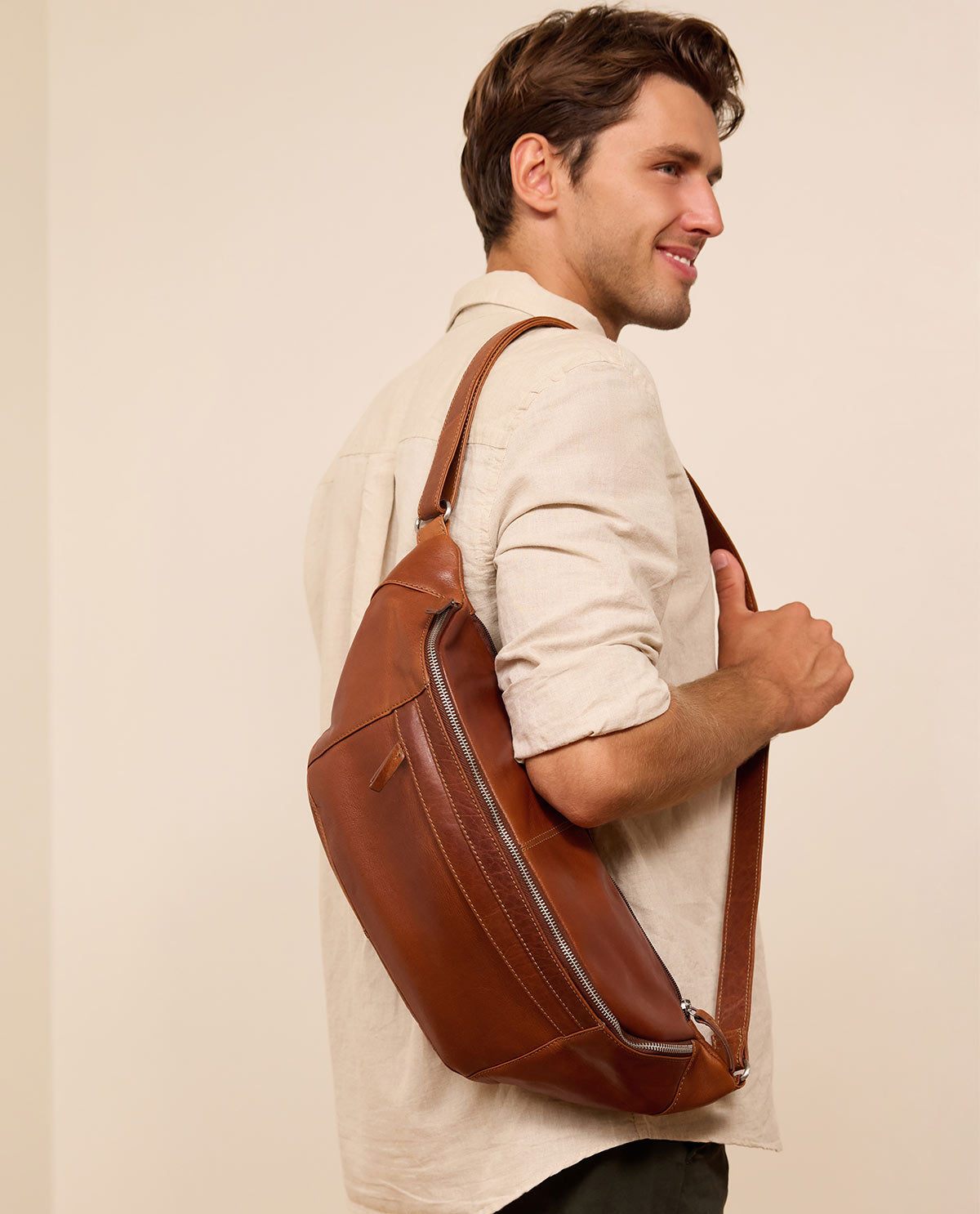 Tämä tilava laukku on valmistettu kestävästä puhvelinnahasta ja se on suurikokoisen vyölaukun muotoinen. Siinä yhdistyvät kaikki kompaktin repun edut ja ehdottoman trendikäs, rento ja viileä bellybag-tyyli - eikä vähiten nahan miellyttävän pehmeän rakenteen ja tyylikkäiden hopeisten vetoketjujen ansiosta. Näin "Esben" voi kulkea mukanasi kaikkialle ilman, että sinun tarvitsee luopua siististä ulkonäöstäsi. "Esbenissä" on aina tarpeeksi tilaa puhelimelle, avaimille ja lompakolle, eväille ja juomapullolle!