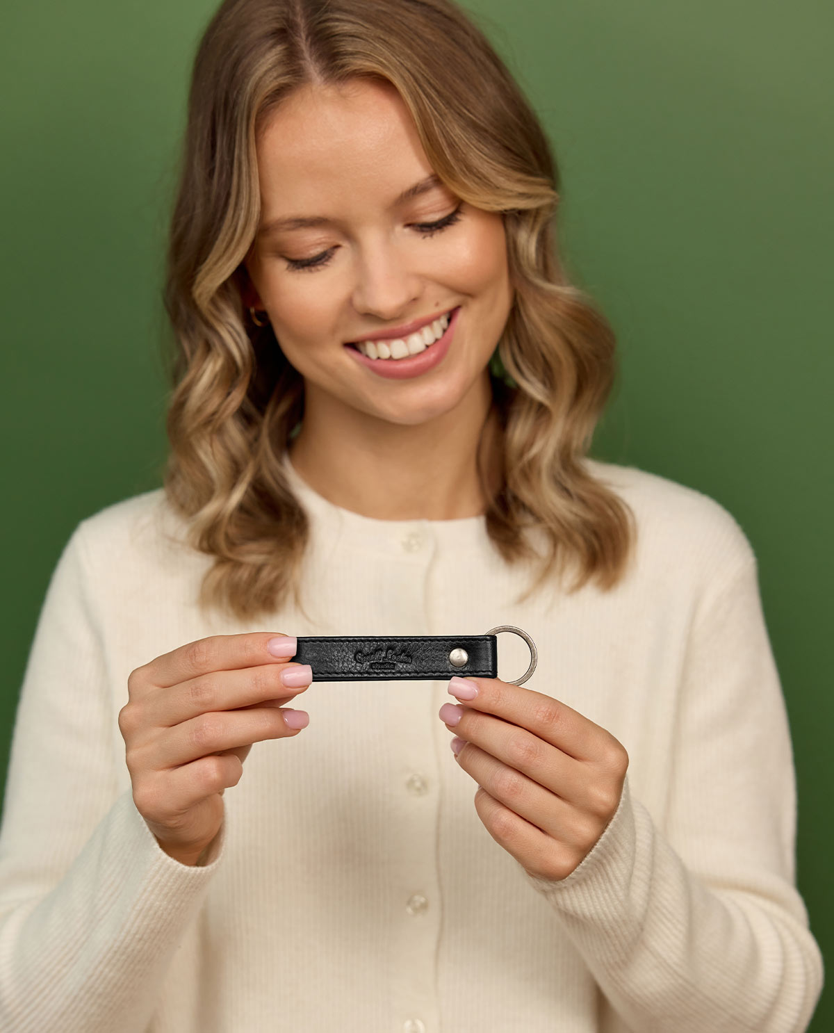"Domenico" on tyylikäs avaimenperä, joka on valmistettu korkealaatuisesta nahasta ja joka tuo tyylikkään lisän arkeesi. Sen hoikka, moderni muotoilu tekee siitä ajattoman seuralaisen, joka on helppo kiinnittää avaimiisi, laukkuihisi tai reppuusi. Pehmeä nahka tuntuu miellyttävältä kädessä ja antaa avaimenperälle erityisen hienon tuntuman – täydellinen kaikille, jotka arvostavat korkealaatuisia yksityiskohtia.