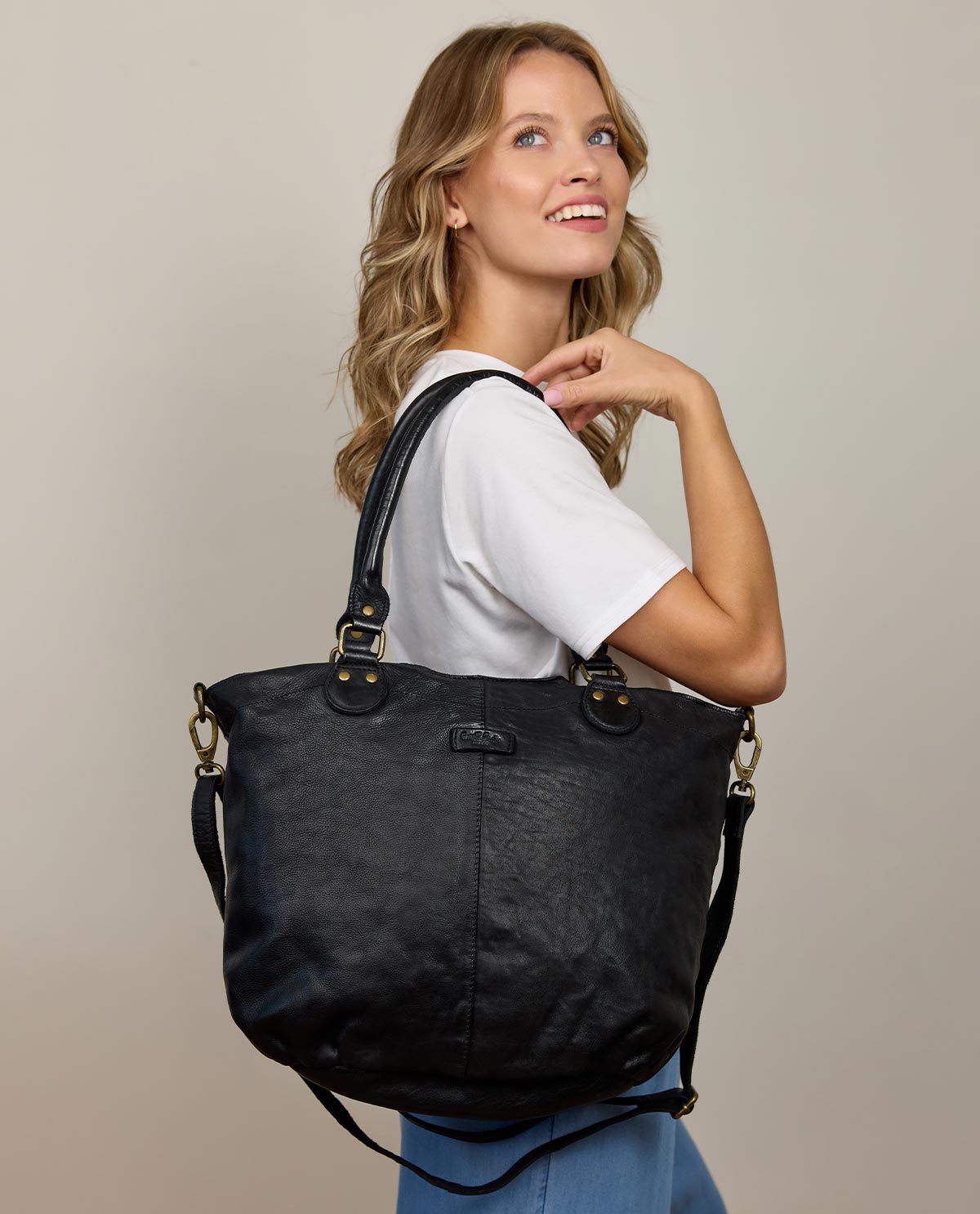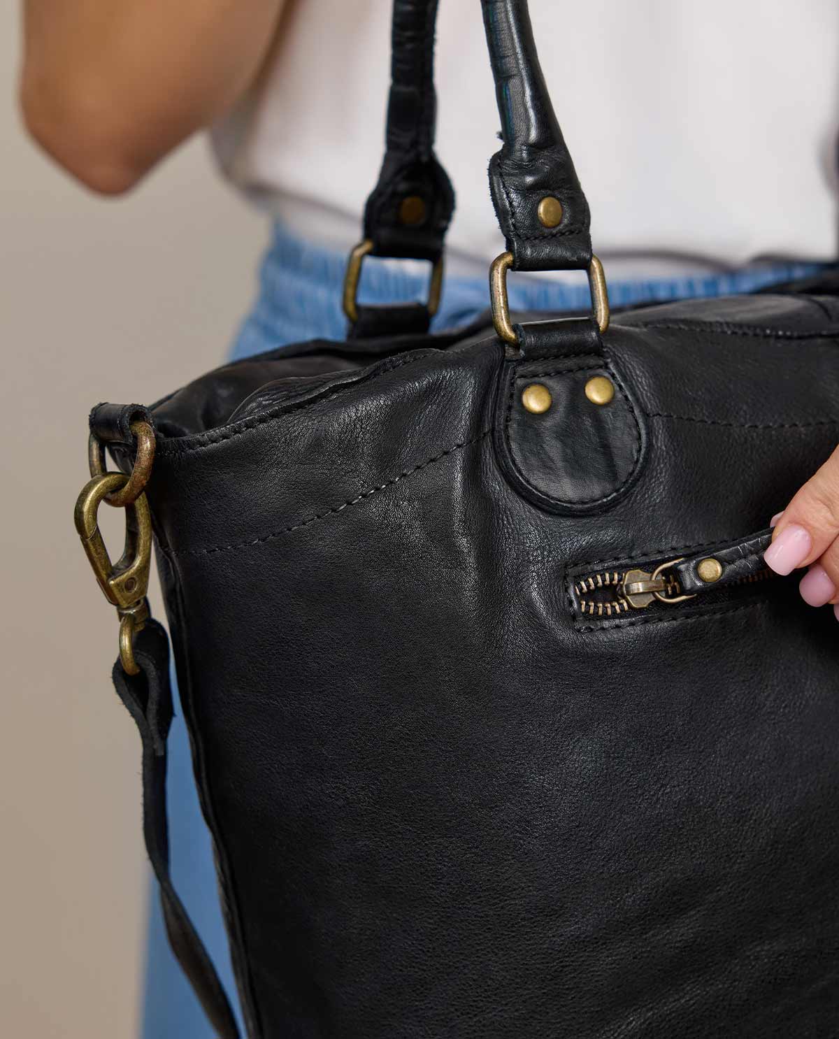 Käsilaukku Olkalaukku Shopper Nahkalaukku Naiset Musta Nahka