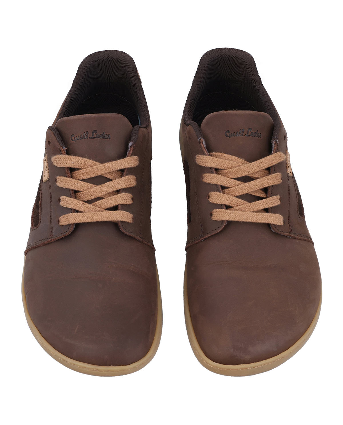 Leveyden ansiosta varpaasi voivat liikkua vapaasti, mikä lisää vakautta ja vähentää väsymystä. Kevyt valmistus tarjoaa miellyttävän paljasjalkatunteen ja tukee sinua jokaisella askeleella ilman, että mukavuudesta tarvitsee tinkiä. Kumipohja varmistaa hyvän pidon erilaisilla alustoilla, kun taas PU-sisäpohja tarjoaa pehmeää vaimennusta. Tekstiilivuori ja joustava nahkapinta pitävät kengät pehmeinä, notkeina ja hengittävinä, joten voit nauttia miellyttävästä käyttökokemuksesta koko päivän.